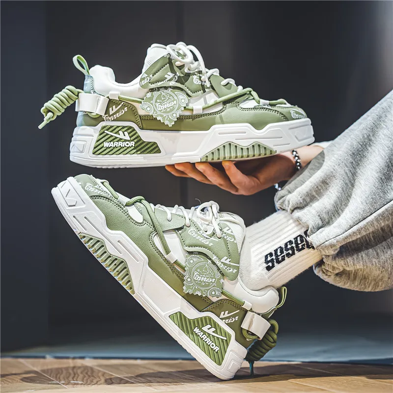 전사 워리어 퍼피 신발 미끄럼방지 쿠셔닝, 내마모성, 가벼움, 키높이 로우탑 스케이트보드 신발 남녀공용 그린 화이트