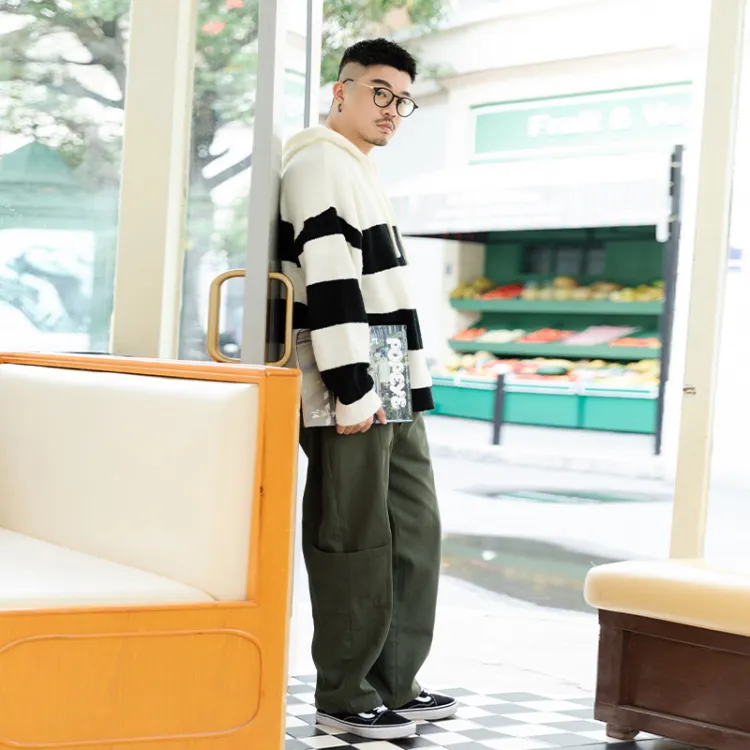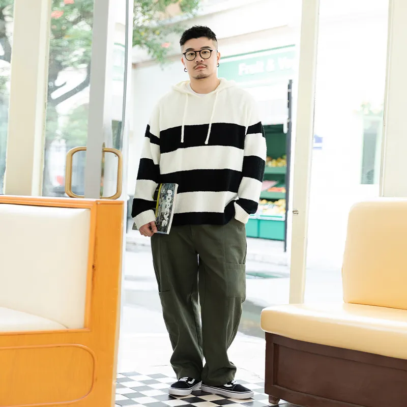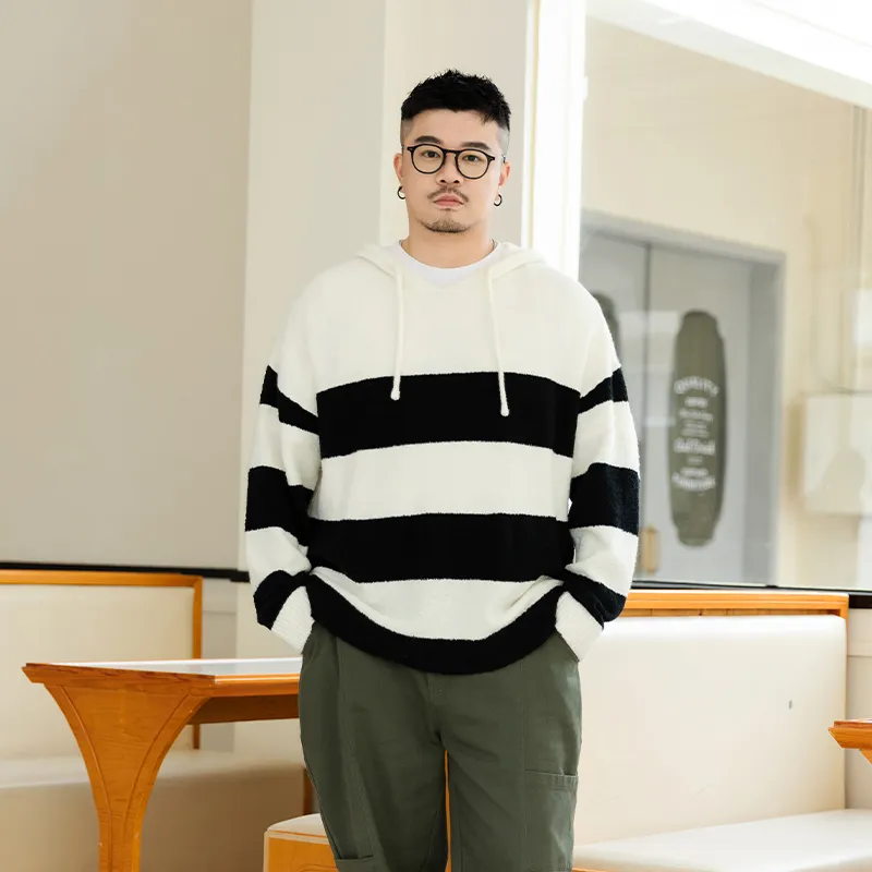 WAYNEXZAVIER 스웨터 남성 블랙 화이트 스트라이프 패턴