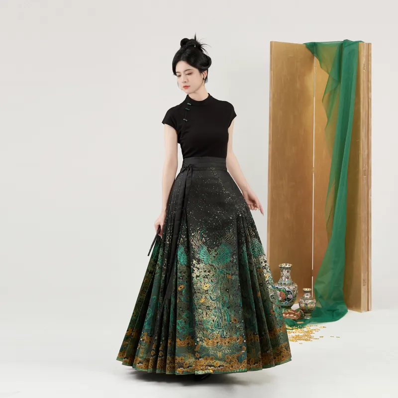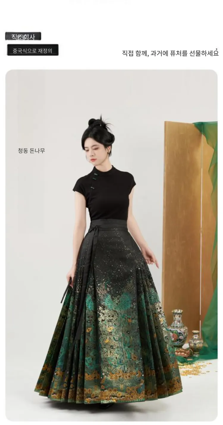 2종 세트 (피콕 깃털 상의 + 말 페이스 스커트)