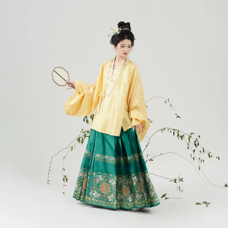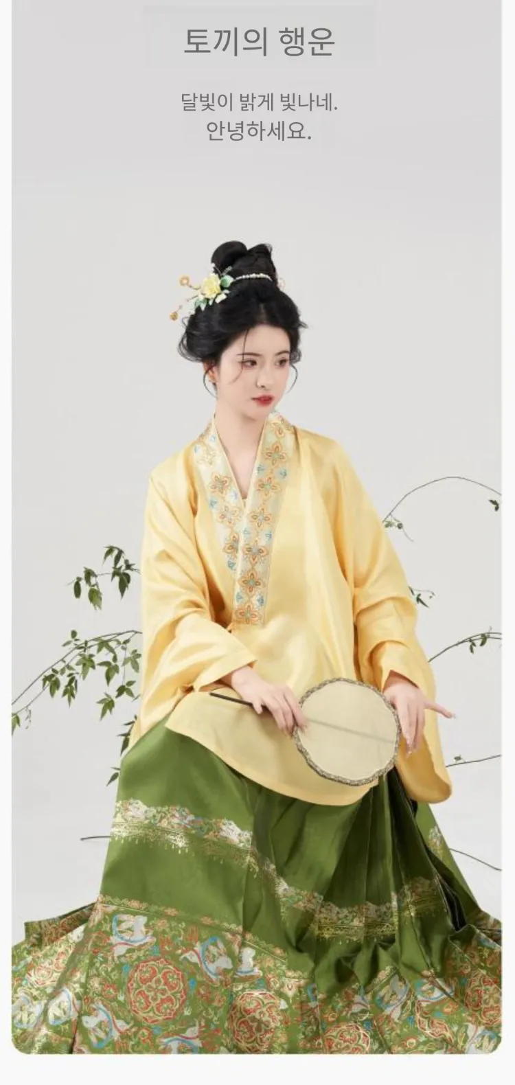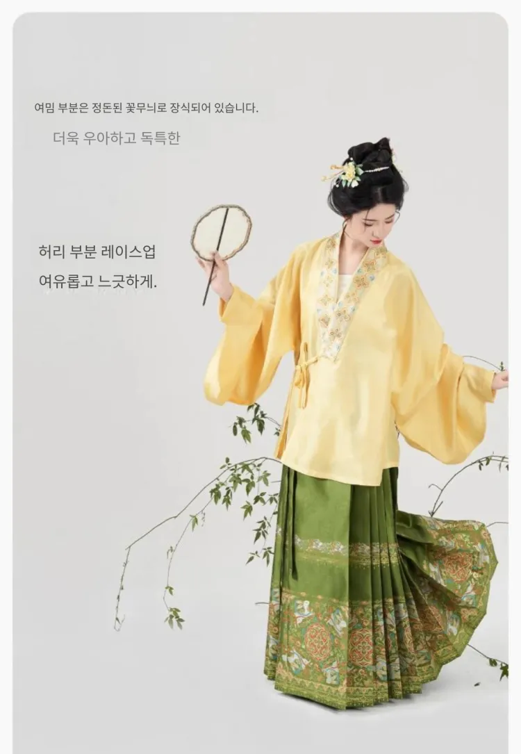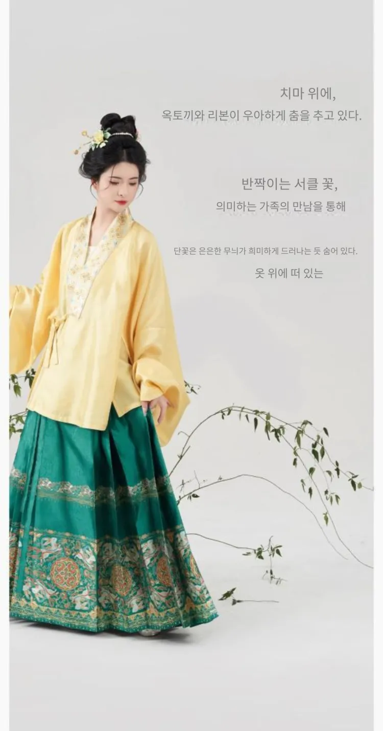 2개/세트 (옐로우 십자-Over 상의 + 그린 말-페이스 스커트)
