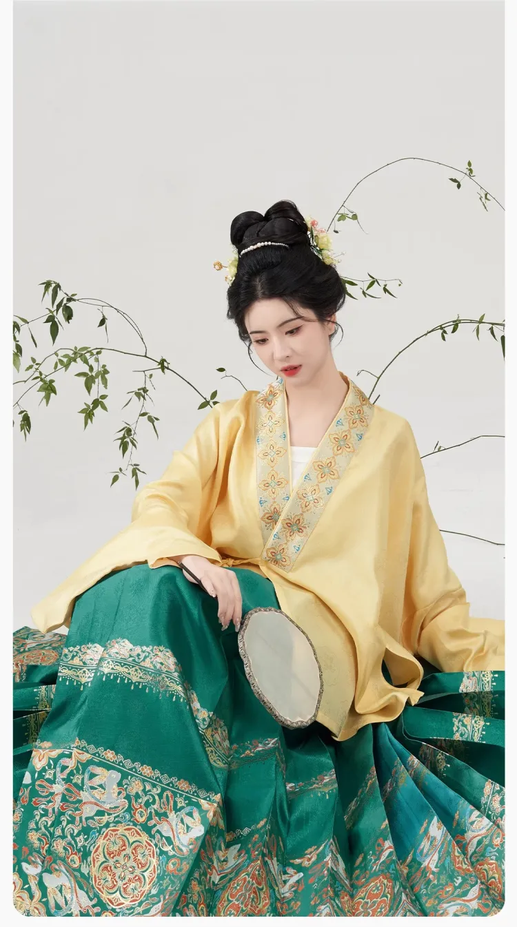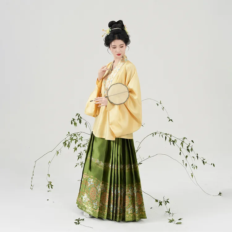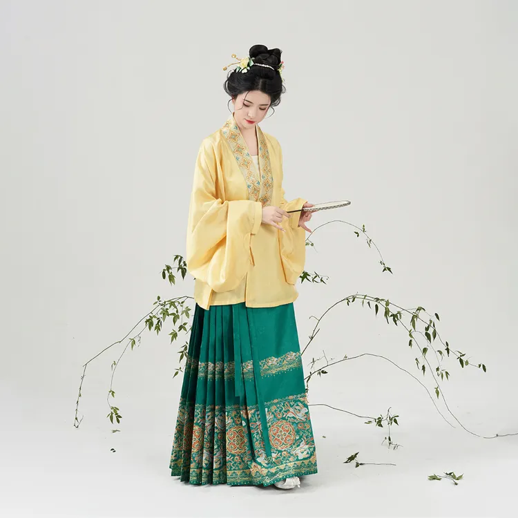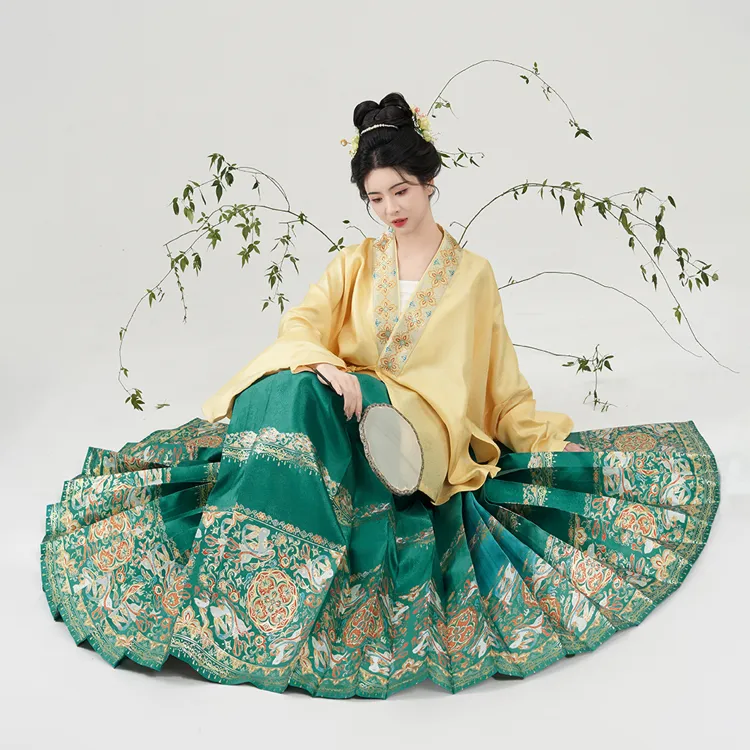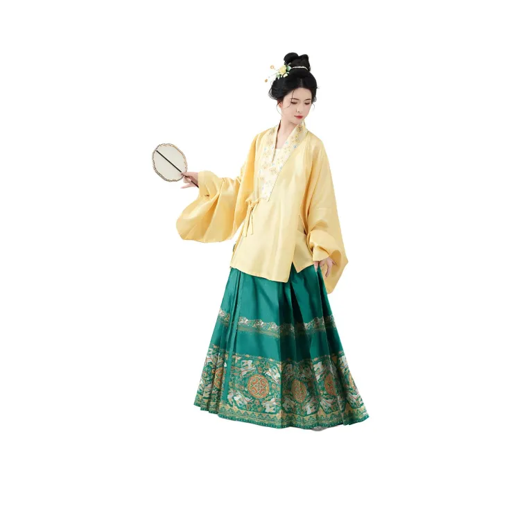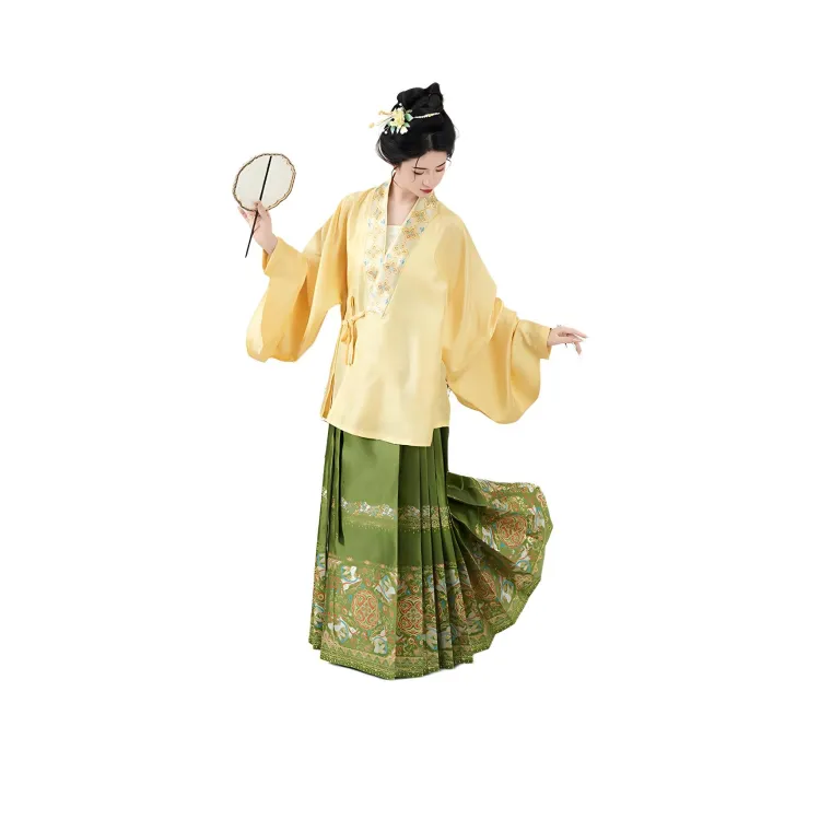 2개/세트 (옐로우 십자-Over 상의 + 그린 말-페이스 스커트)