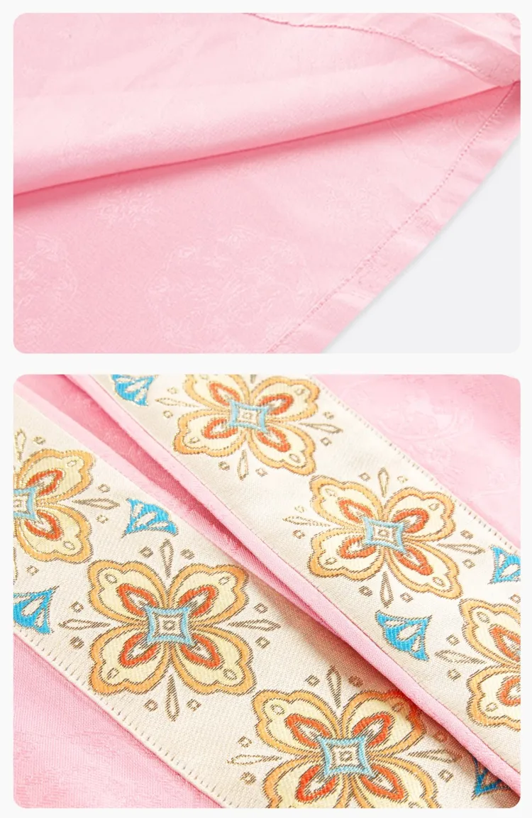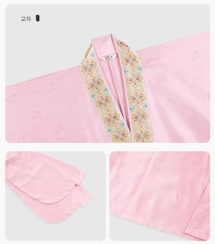 2종 세트 (핑크 십자-오버 상의 + 레이크 블루 말-페이스 스커트)