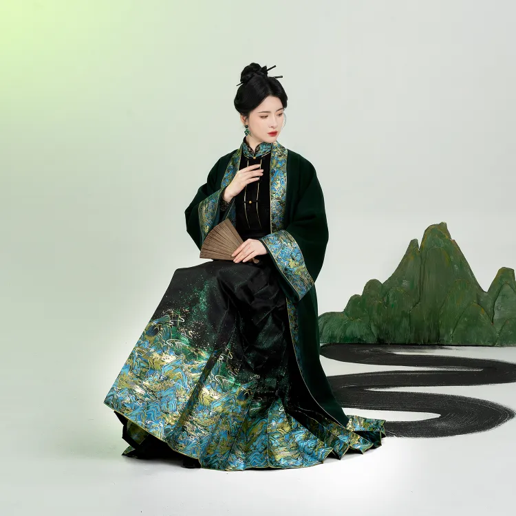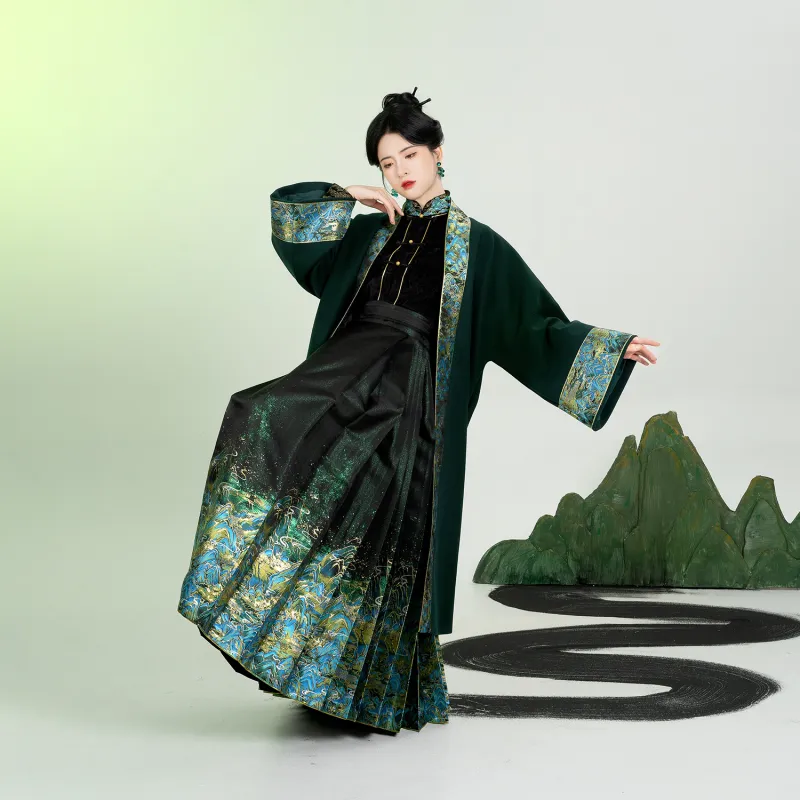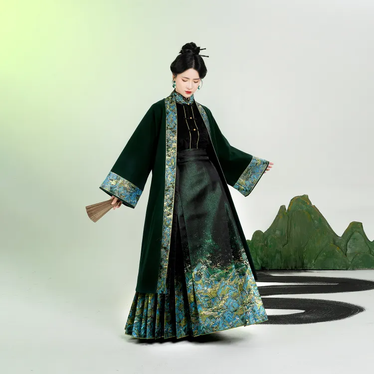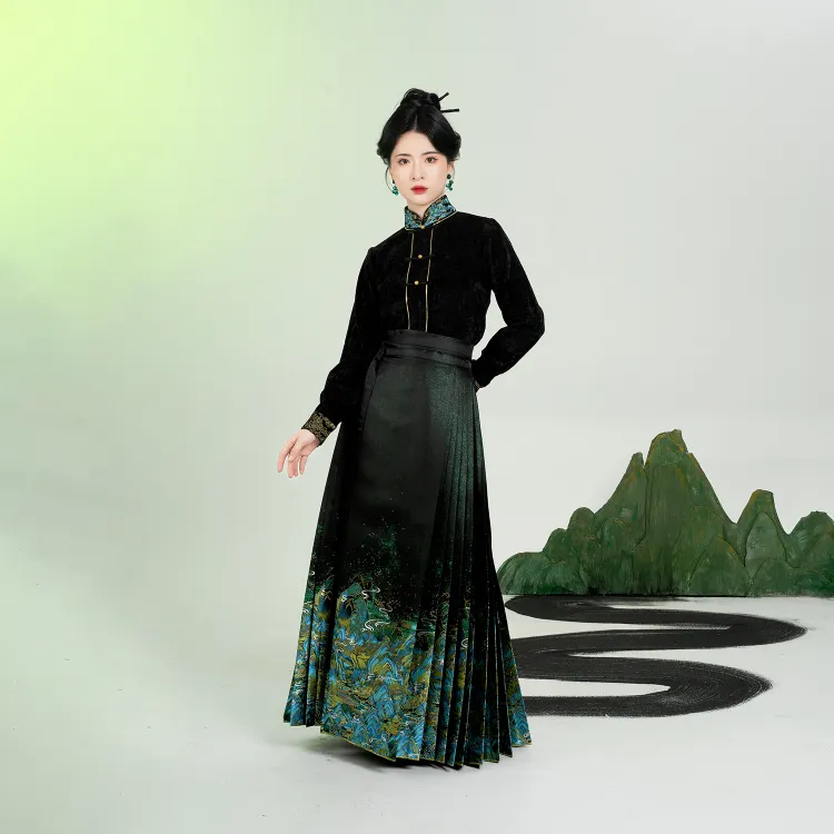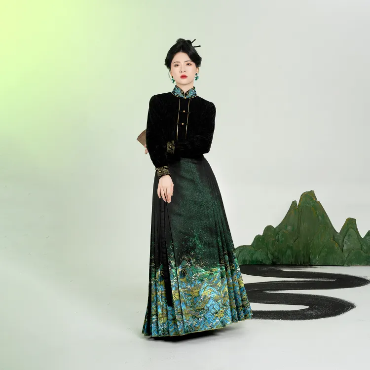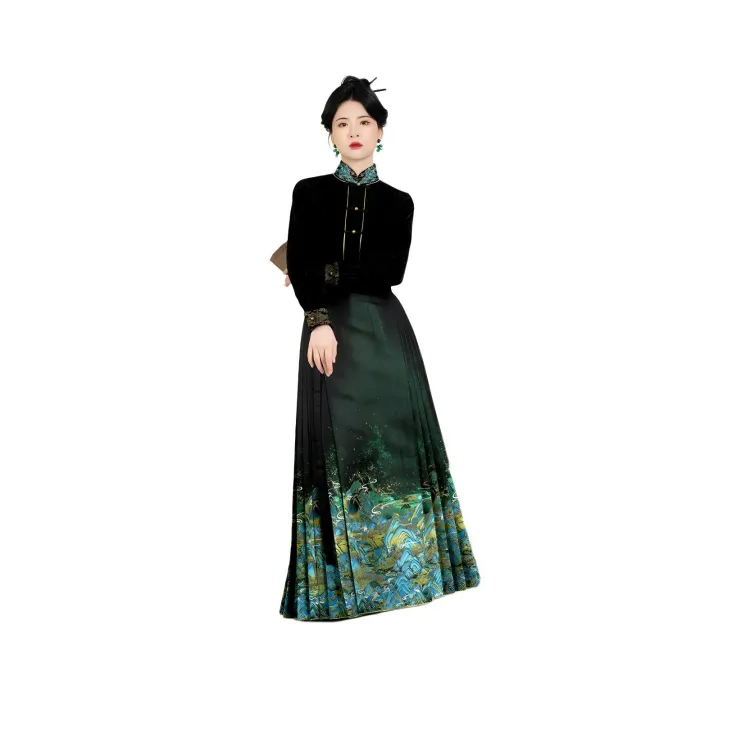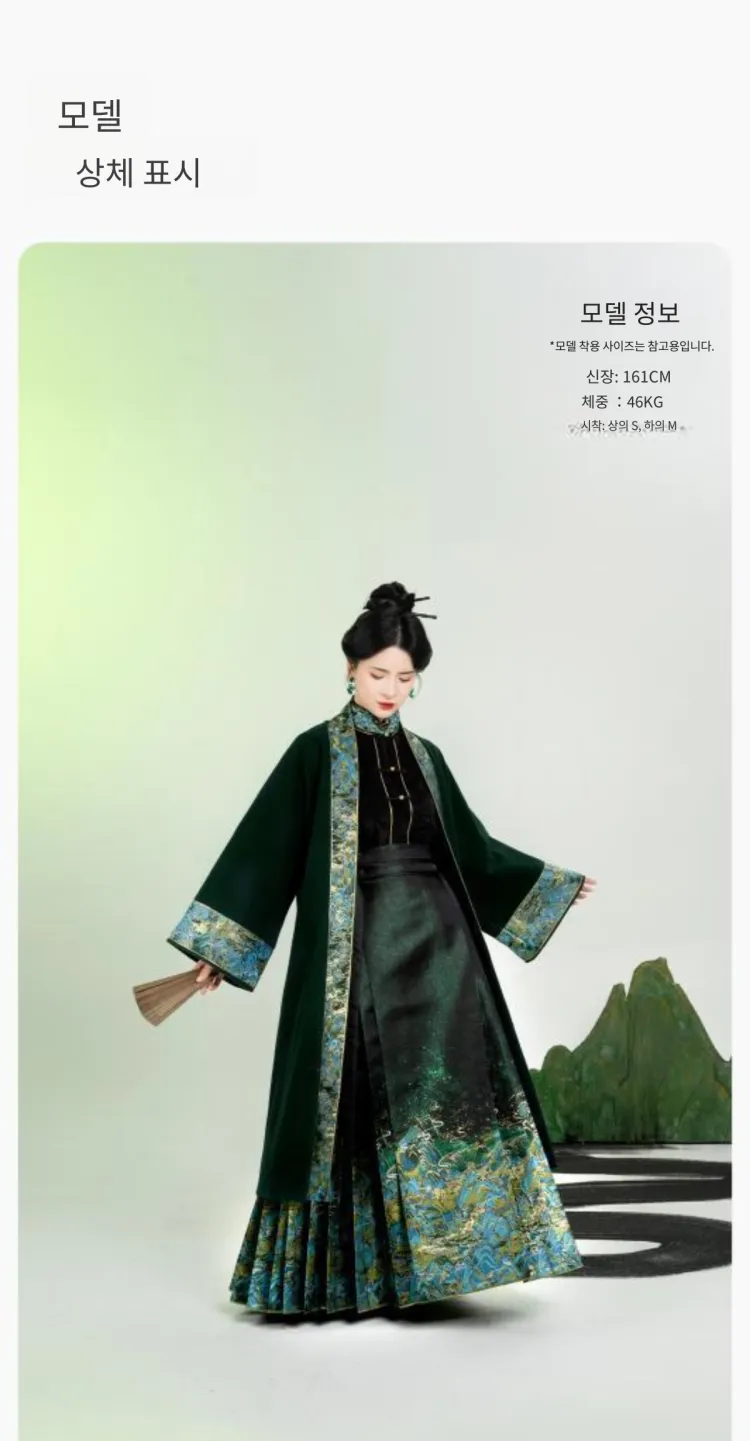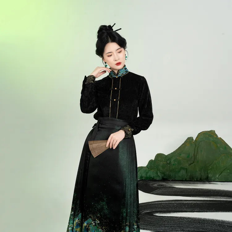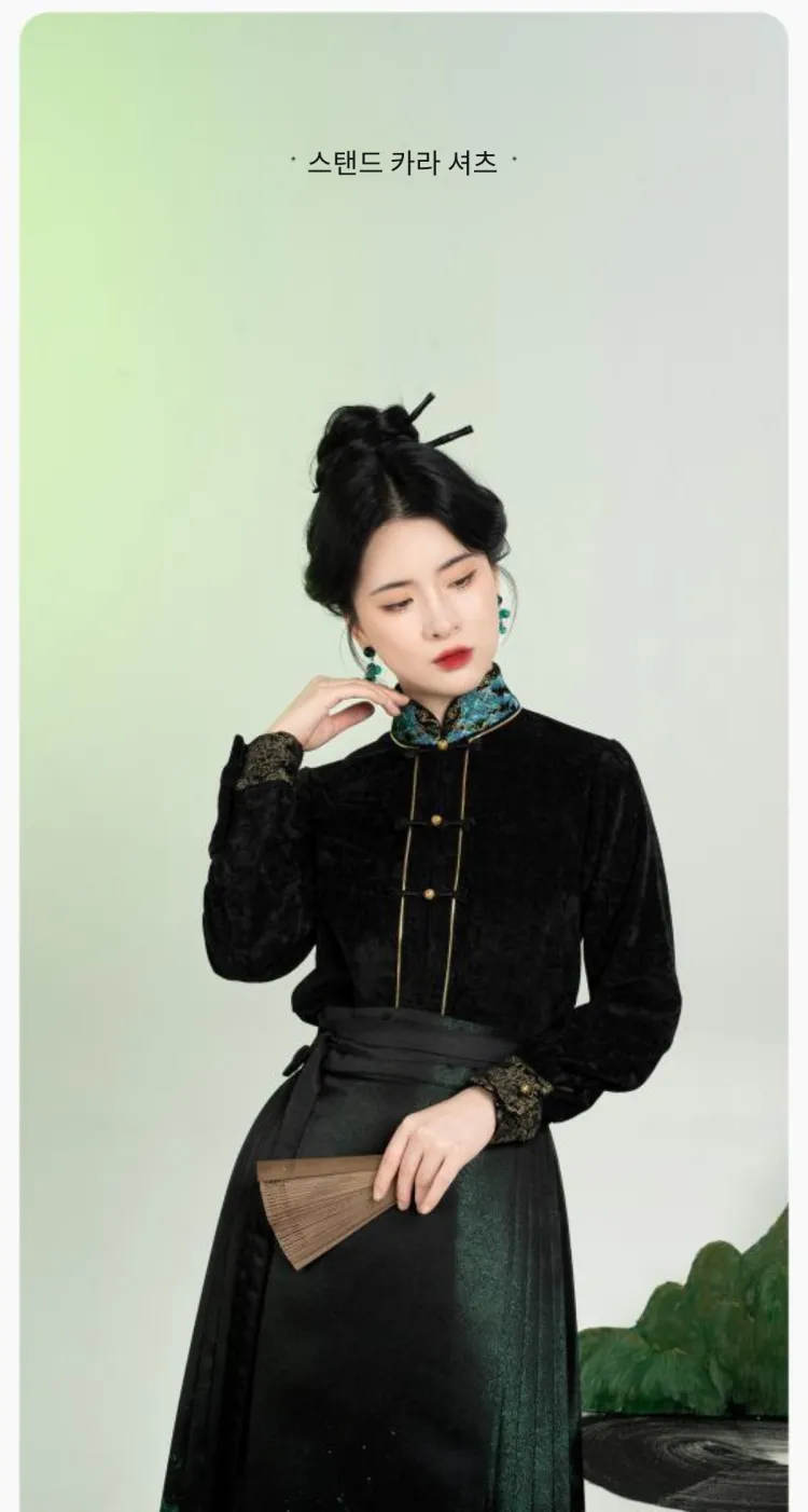 3종 세트 (롱 기장 Baozi + Han 요소 스탠드 카라 상의 + 마면치마)