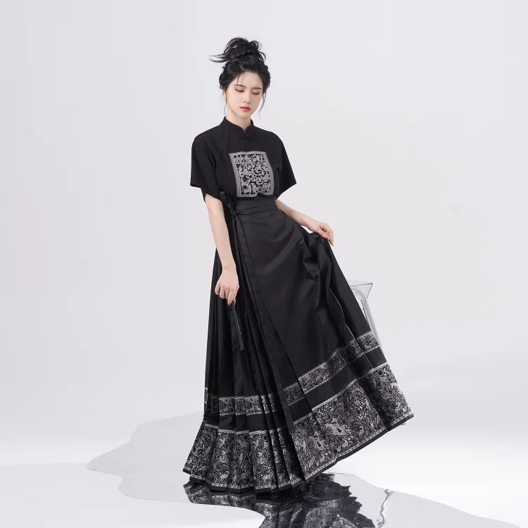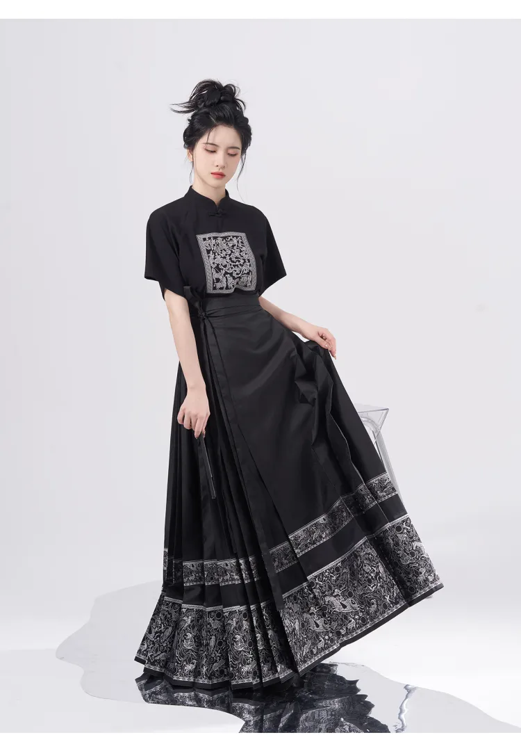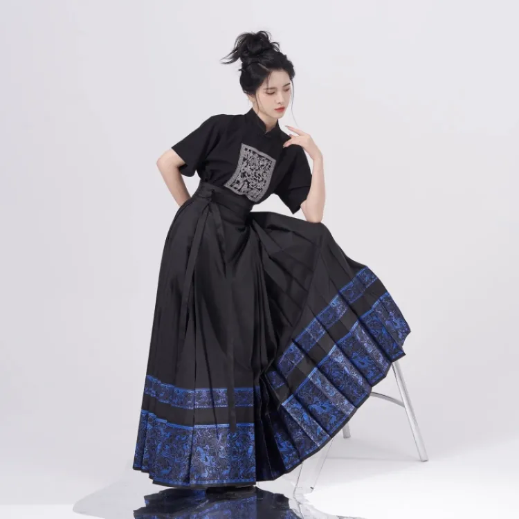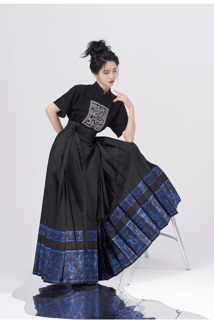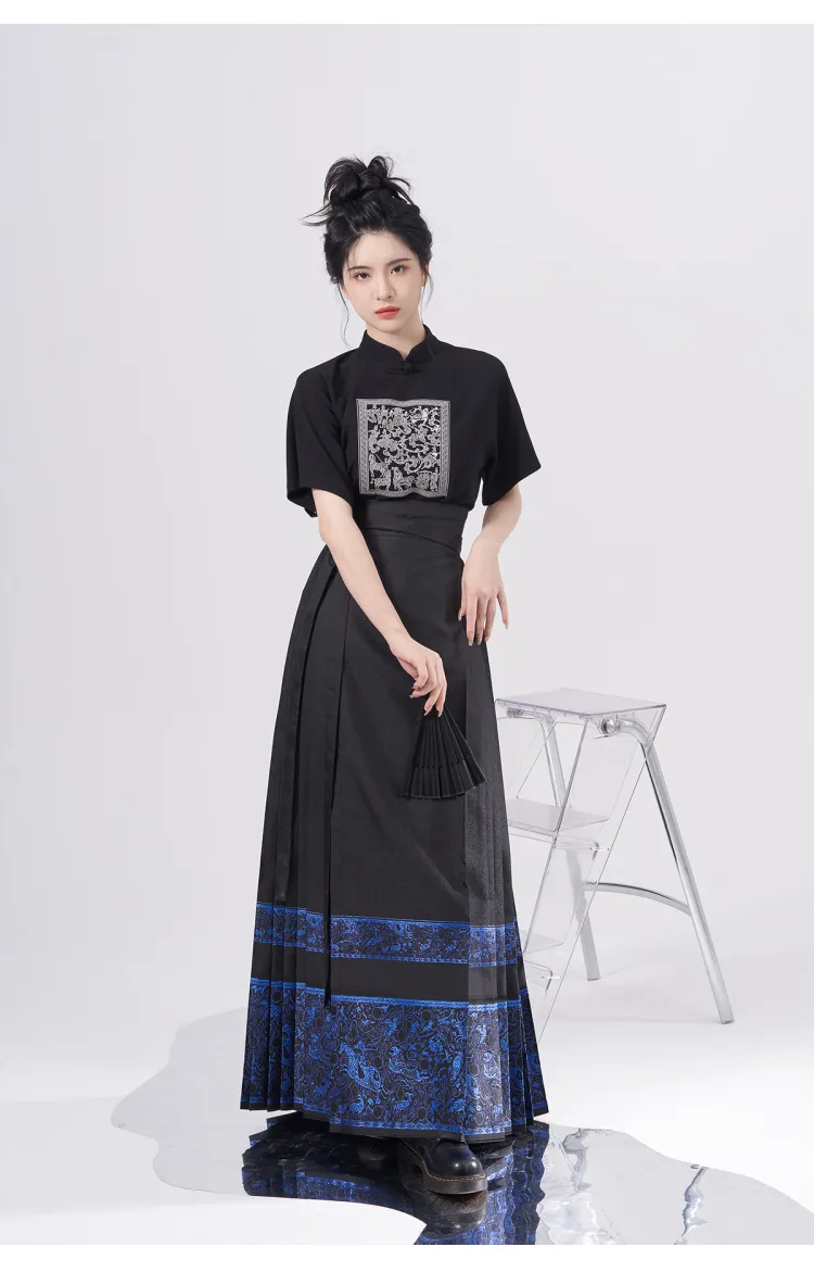 2종 세트 (블랙 Han 요소 스탠드 칼라 + 블루 앤 골드 말 페이스)