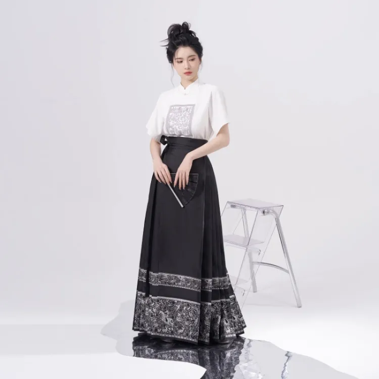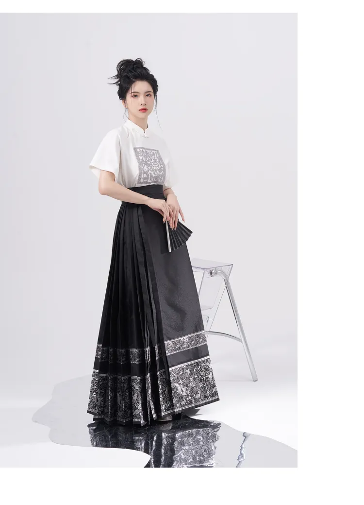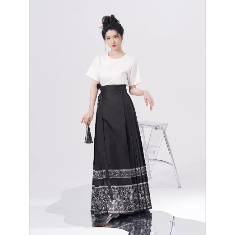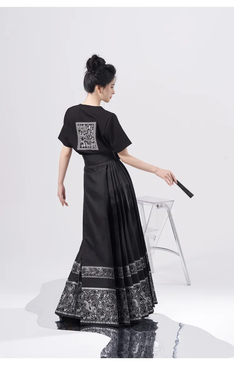 2종 세트 (블랙 티셔츠 + 우븐 실버 말 페이스)