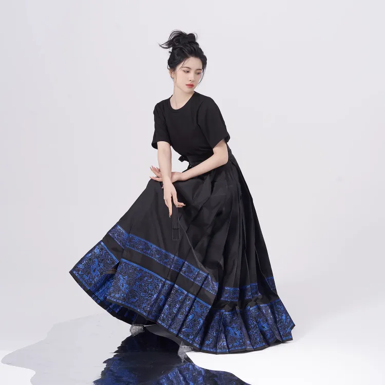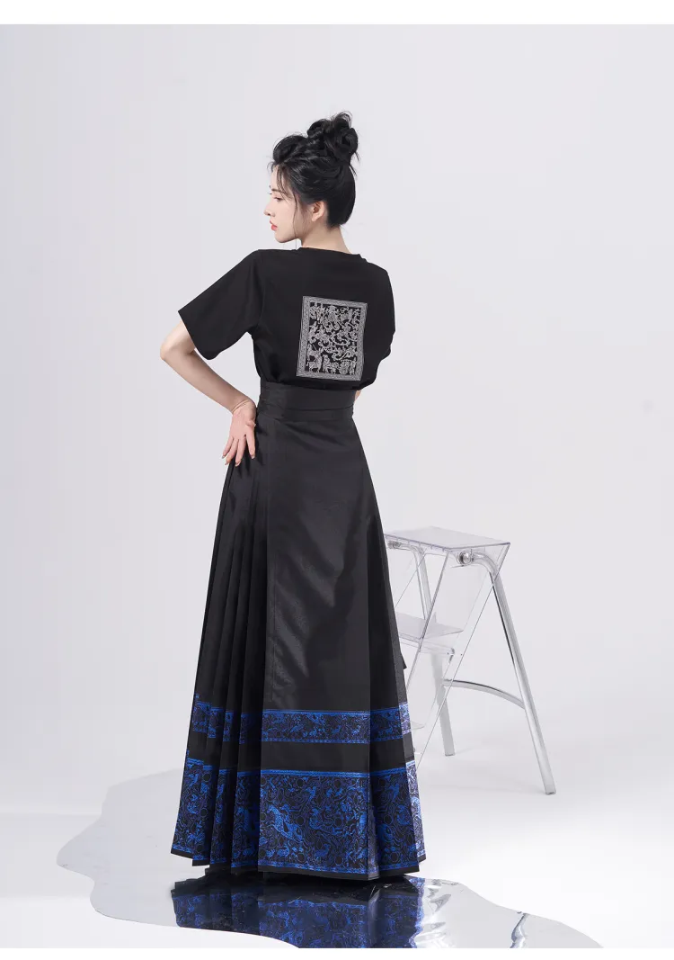 2종 세트 (블랙 티셔츠 + 블루 골드 말 페이스)