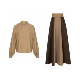 Weaving Division 중국 스타일 상의 + 플리츠 스커트 여성 투피스 스커트 세트 - POIZON