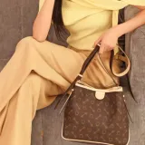 Why 인조 가죽 휴대용 크로스백, 숄더 백 L 여성 다크 커피 & 베이지