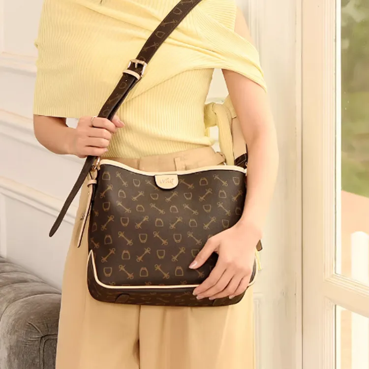 Why 인조 가죽 휴대용 크로스백, 숄더 백 L 여성 다크 커피 & 베이지 - POIZON