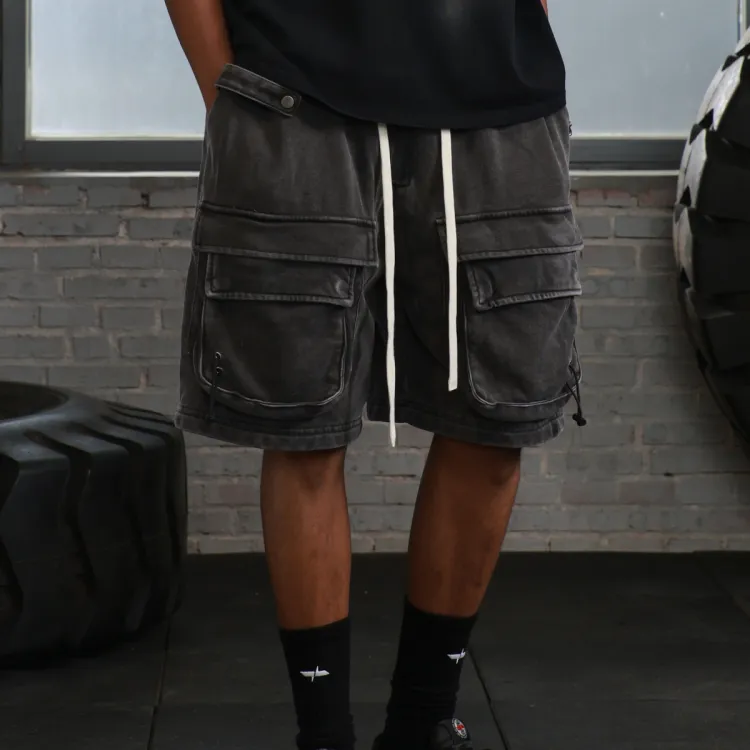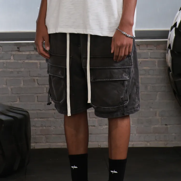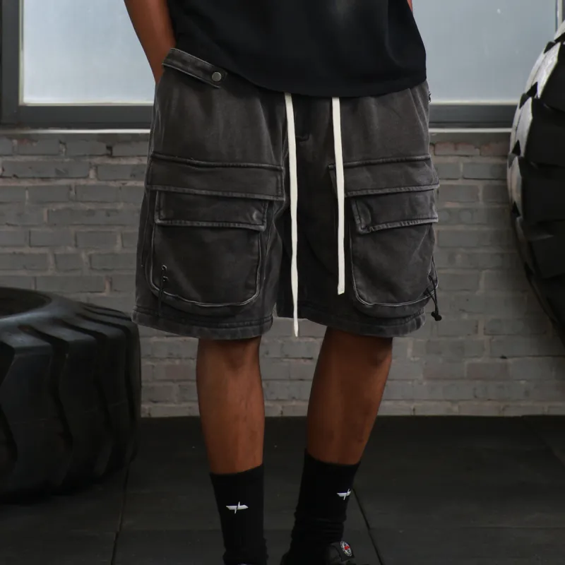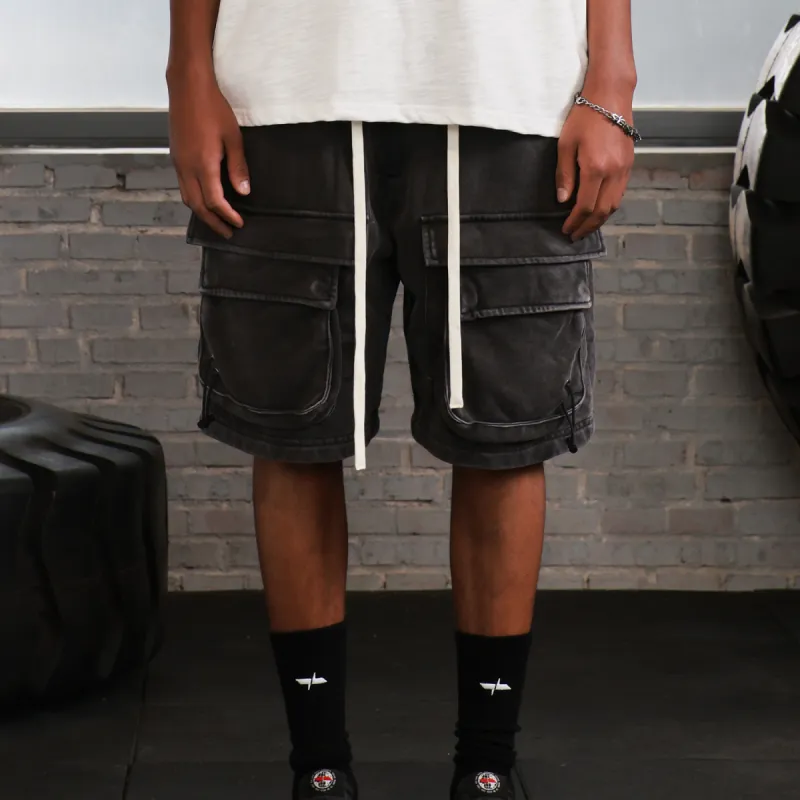 WILDX 워시드 블랙 남녀공용 카고 반바지 - POIZON