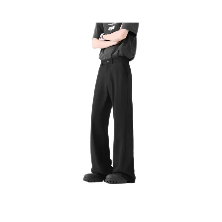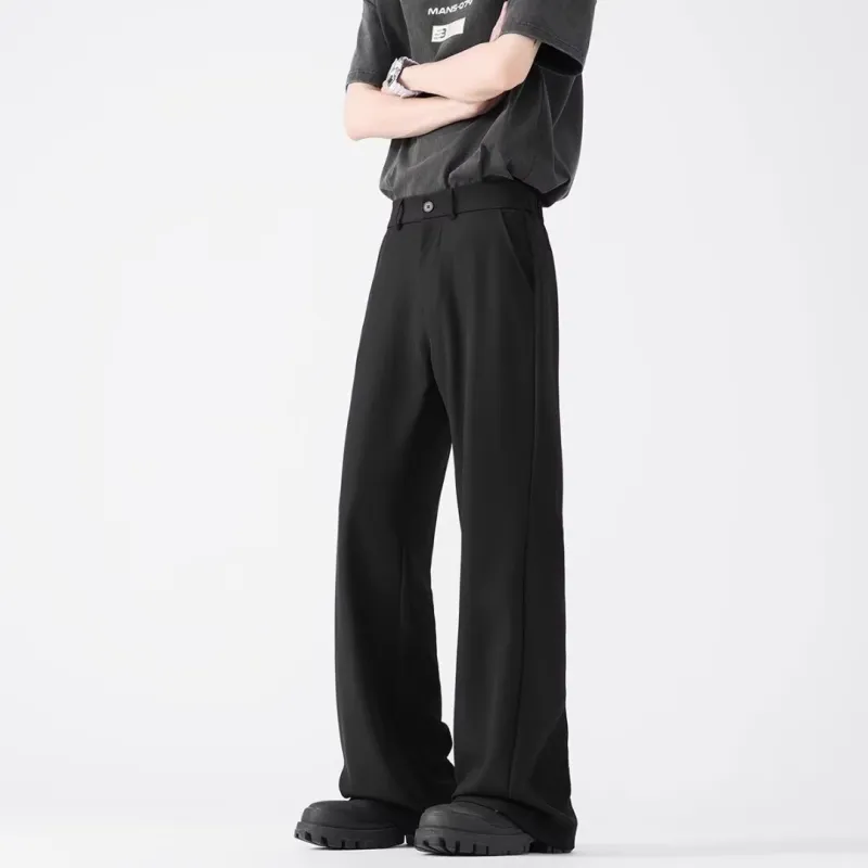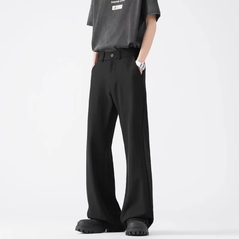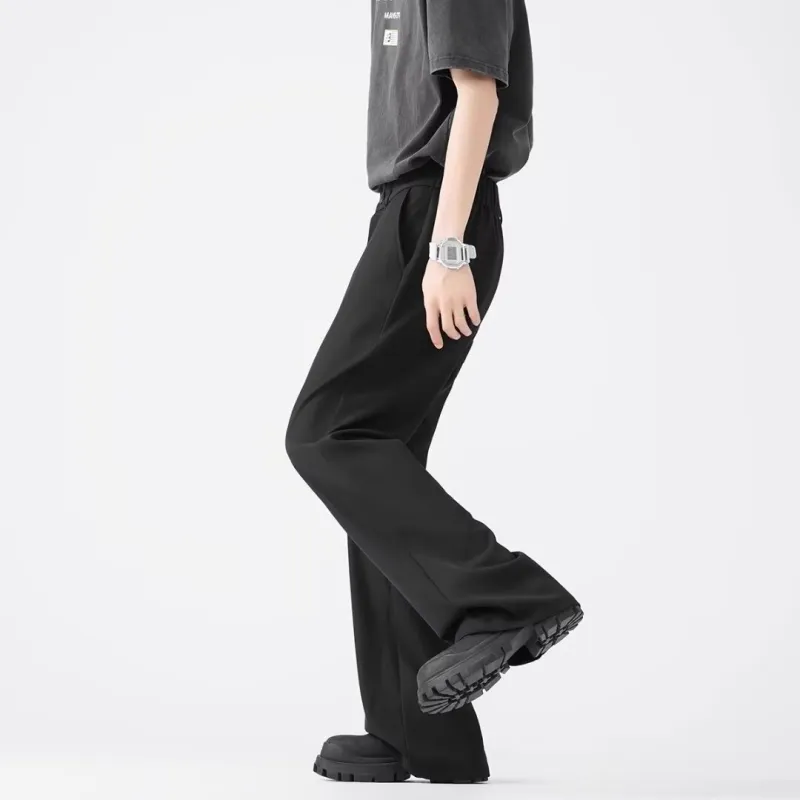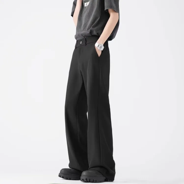 MUMUTU 부츠컷 팬츠 남성용, 드레이프 미니멀리스트 스타일 스트레이트핏 캐주얼 팬츠 남성 - POIZON