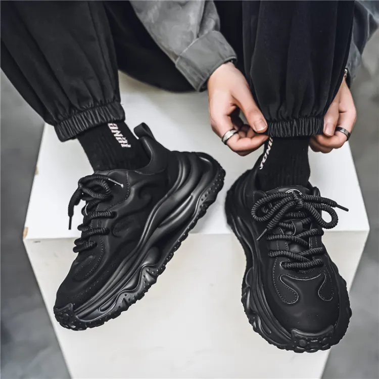 MUMUTU 쿠셔닝, 미끄럼방지, 내마모성, 키높이 로우탑 청키 스니커즈 남성 - POIZON