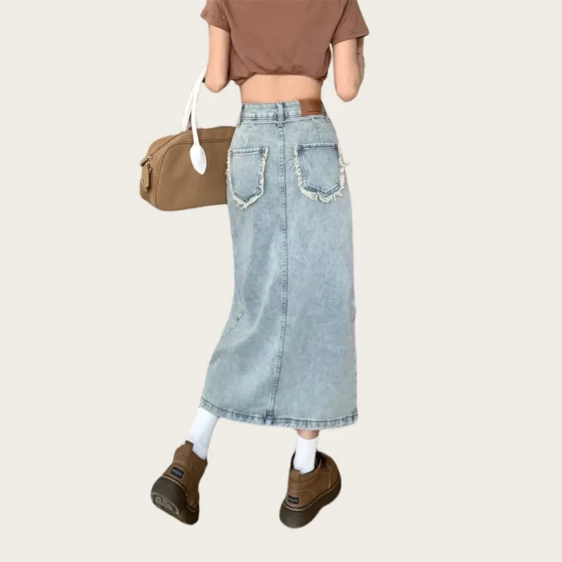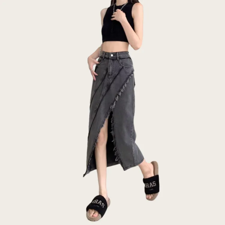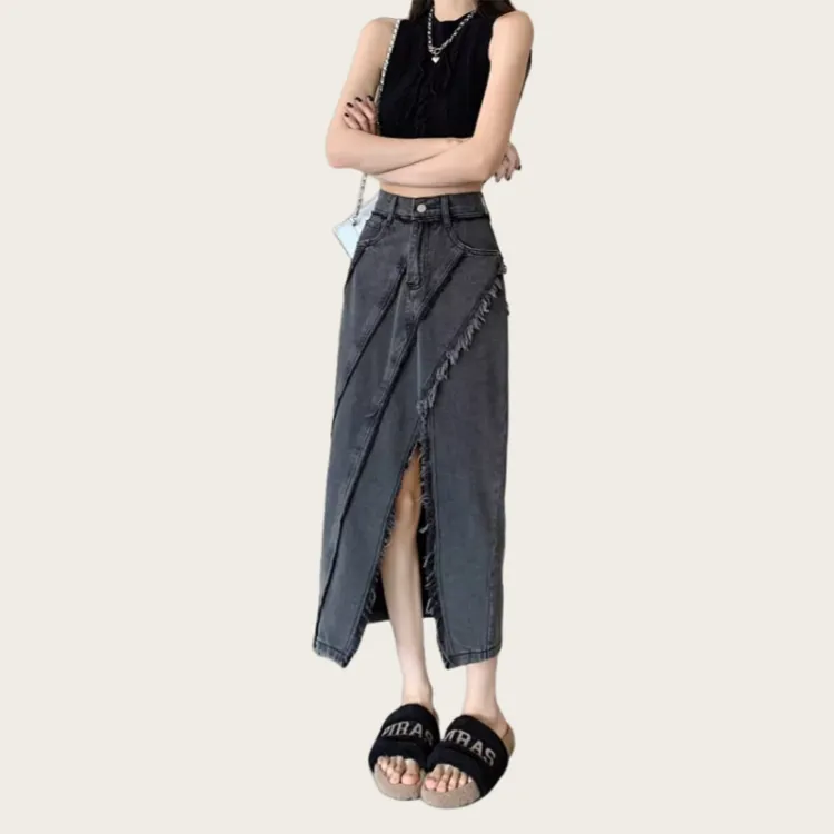 MUMUTU 여성 데님 롱 스커트 - POIZON
