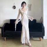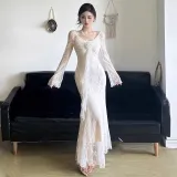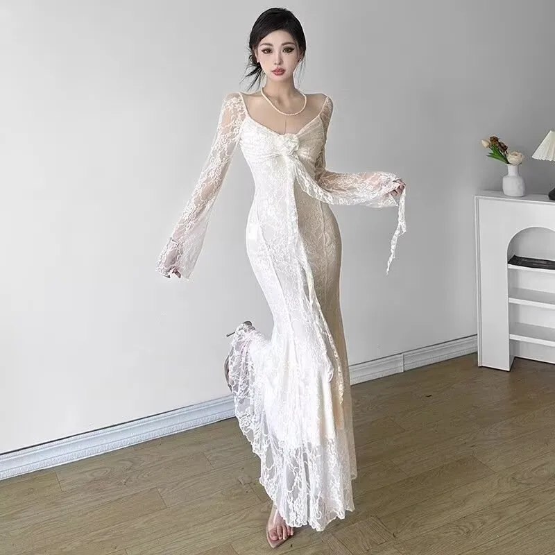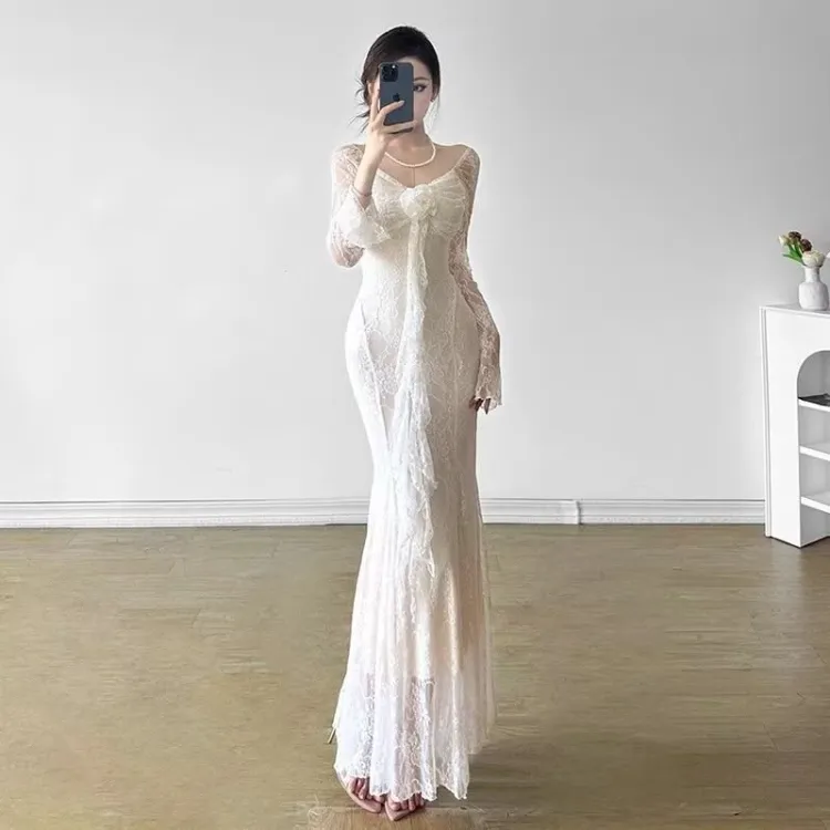 MUMUTU 화이트 여성 긴팔 원피스 - POIZON