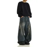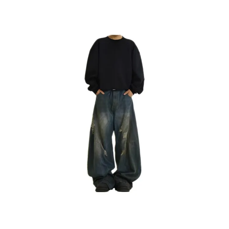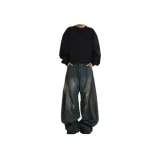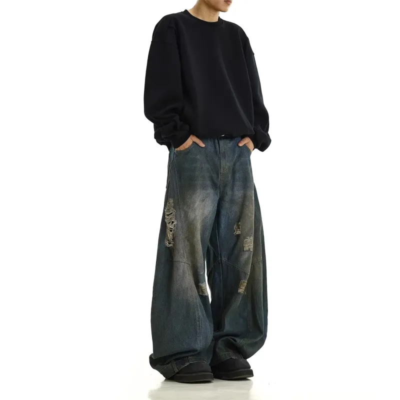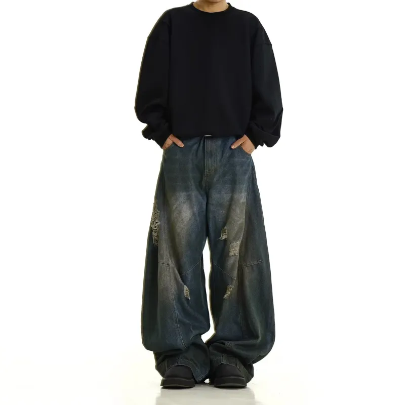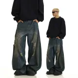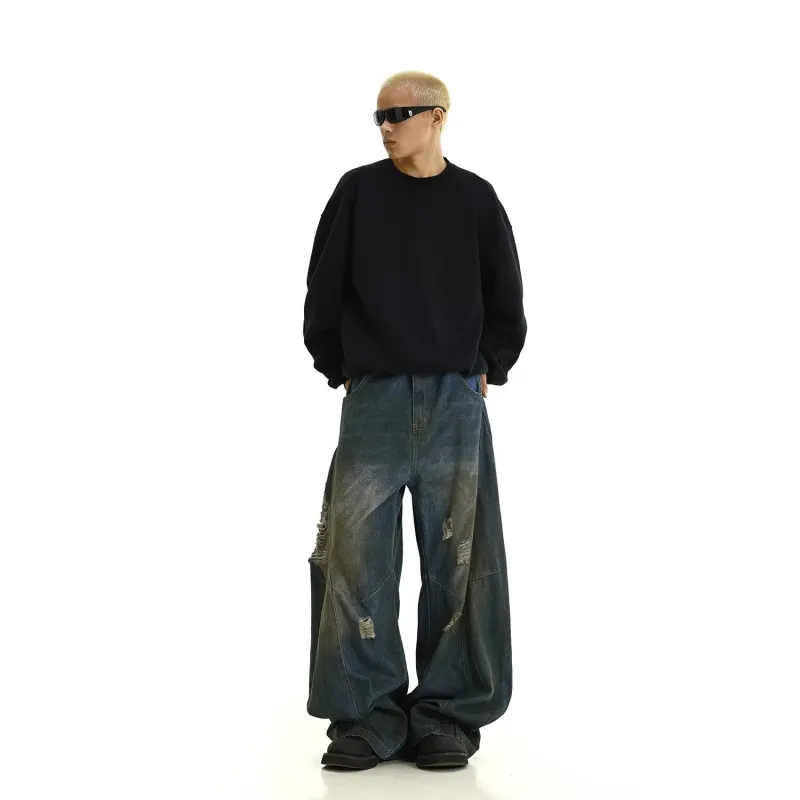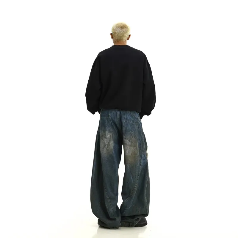 MUMUTU 남성용 및 여성용 트렌디 브랜드 루즈핏 와이드 팬츠 바닥 길이 시미터 바지 남성 - POIZON