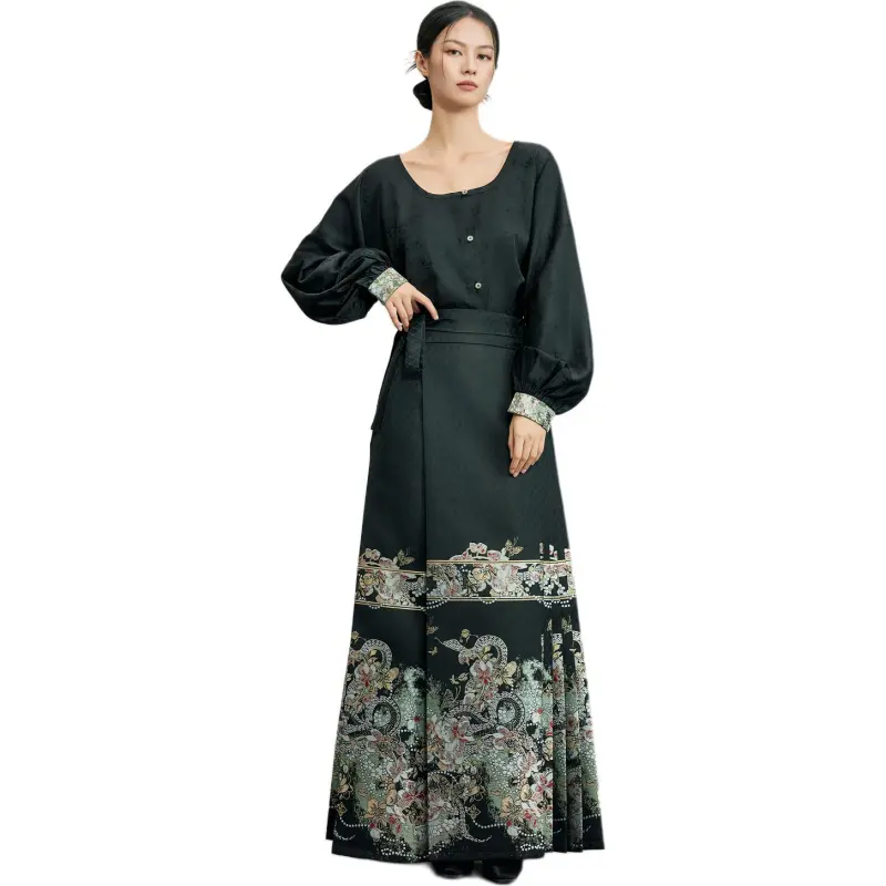 XINGHEHANGE 마면치마 블랙 한푸 스커트 세트 여성 - POIZON