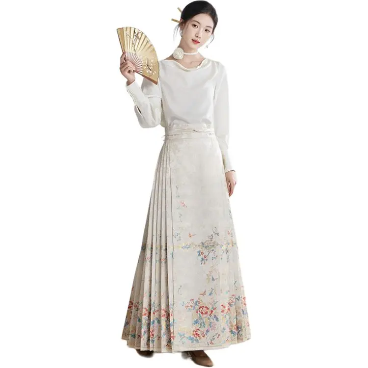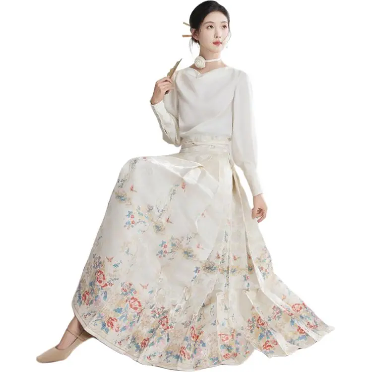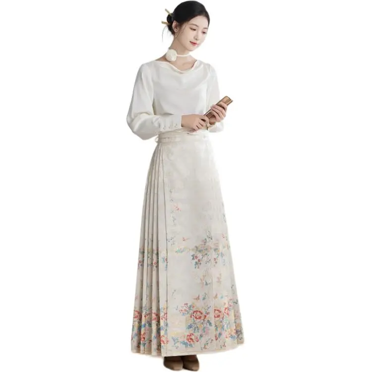 XINGHEHANGE 스커트 한푸 데일리 캐주얼 롱 기장 스커트 여성 화이트