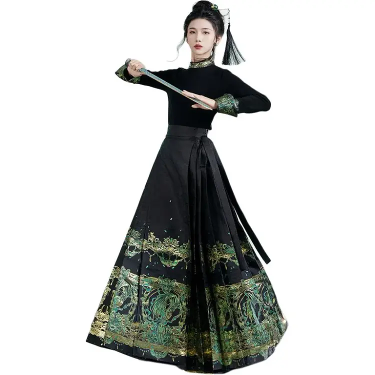 XINGHEHANGE 전통 중국 스타일 신중국 스타일 한푸 리파인드 우아한 캐주얼 롱 기장 스커트 여성 코퍼 시안 - POIZON