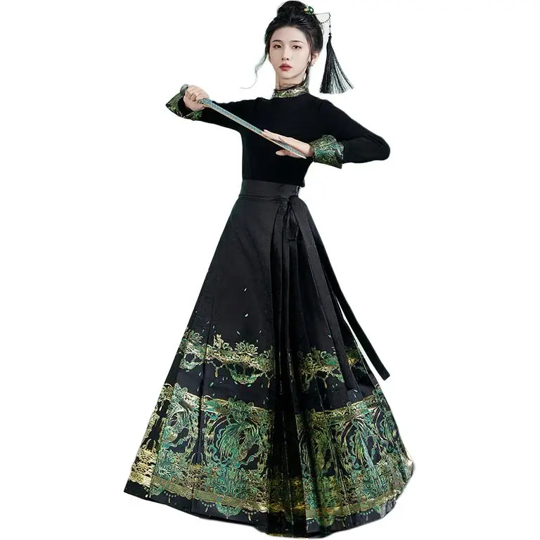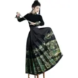 XINGHEHANGE 전통 중국 스타일 신중국 스타일 한푸 리파인드 우아한 캐주얼 롱 기장 스커트 여성 코퍼 시안