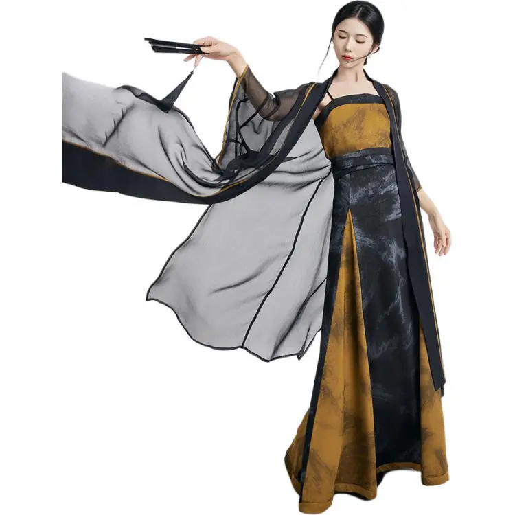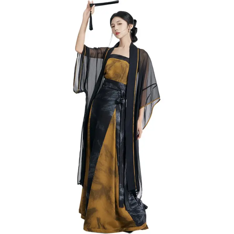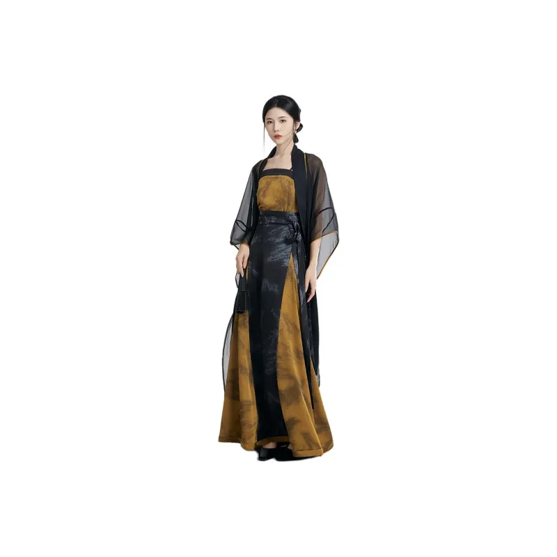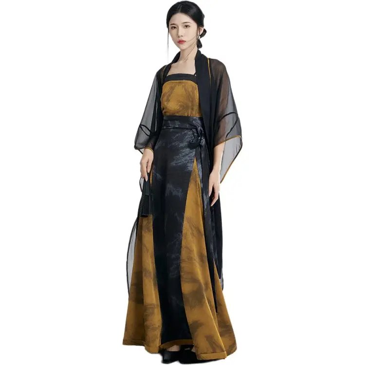 XINGHEHANGE 패션 미니멀리스트 스타일 Three Crease 치마 길이 Ganshi 롱 기장 가운 Song Mo 캐미솔 한푸 스커트 세트 여성 - POIZON
