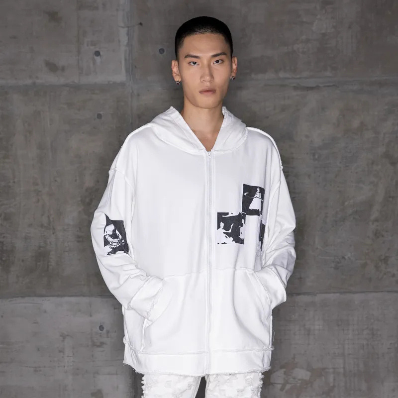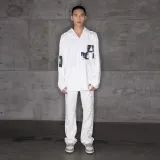 배치 1: 원단/모자 안감: 84.8% 면, 15.2% 폴리에스터 배치 2: 화이트: 15.1% 폴리에스터, 84.9% 면; 카키: 18.6% 폴리에스터, 81.4% 면; 그레이: 9.5% 폴리에스터, 90.5% 면; 블랙: 51.3% 폴리에스터, 48.7% 면
