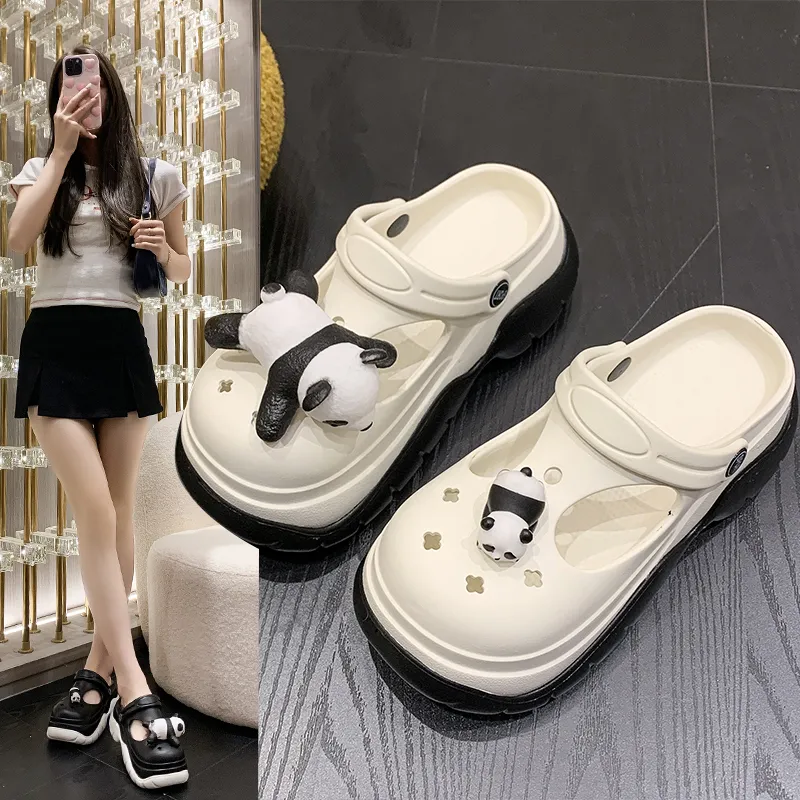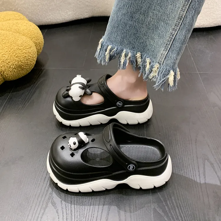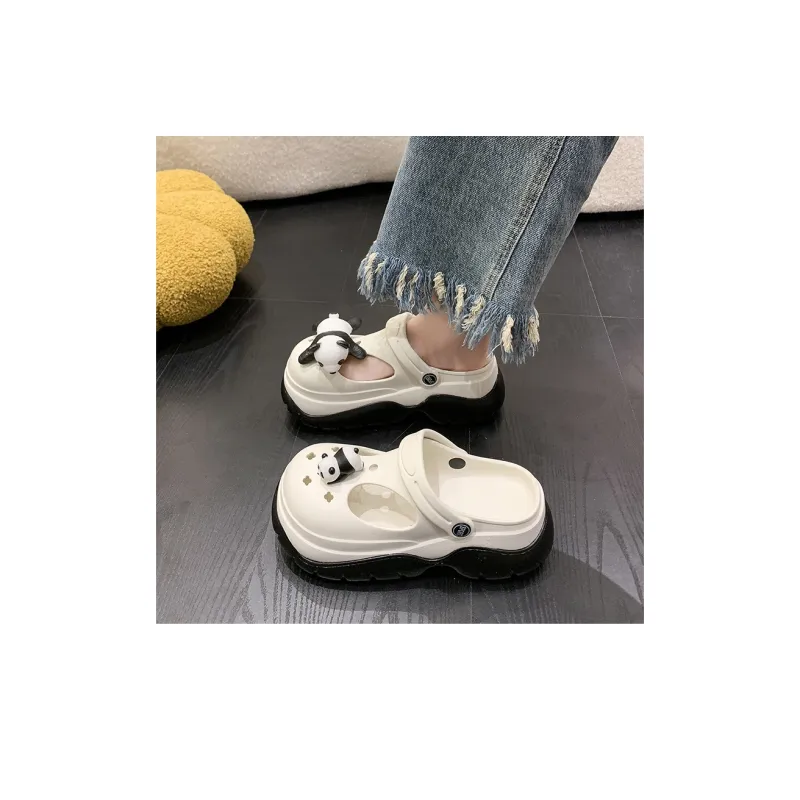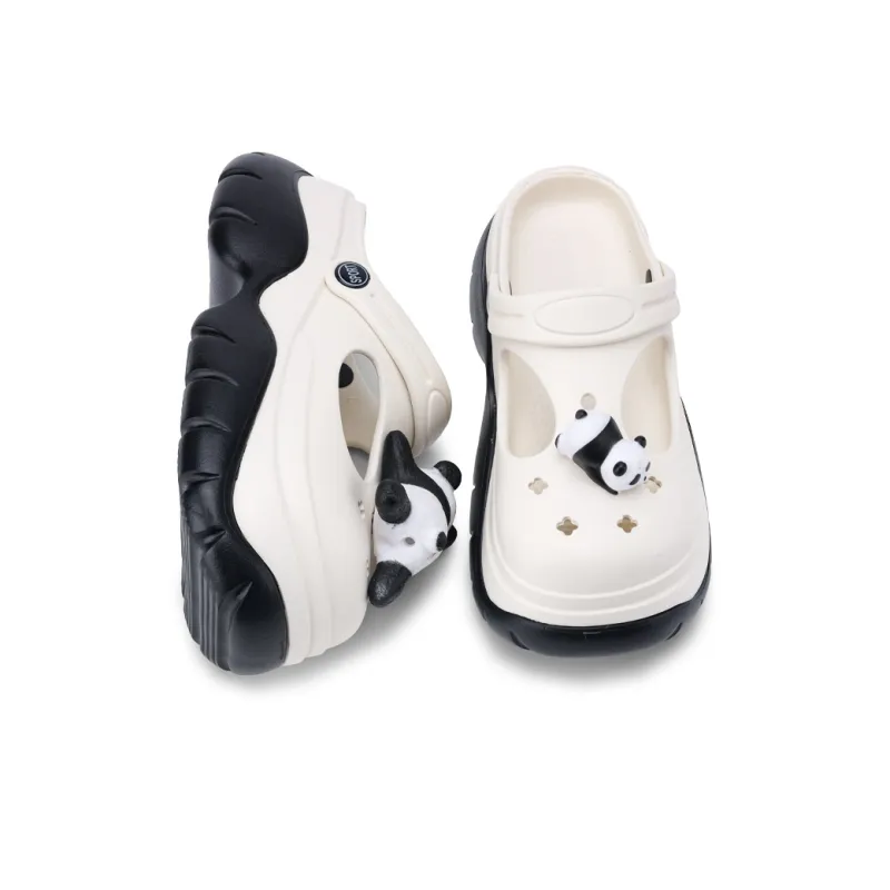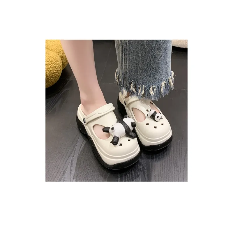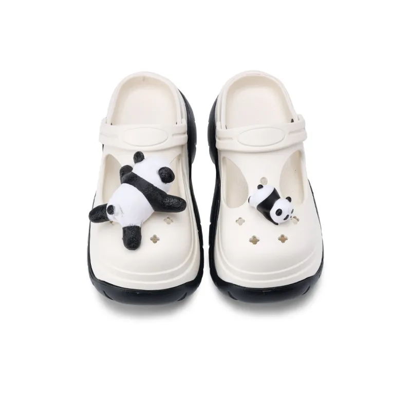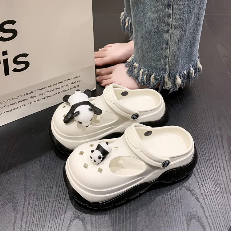 XMISTUO 큐트 팬다 부드러운 밑창 클로즈드 토 슬리퍼 클로그 4cm 여성 - POIZON