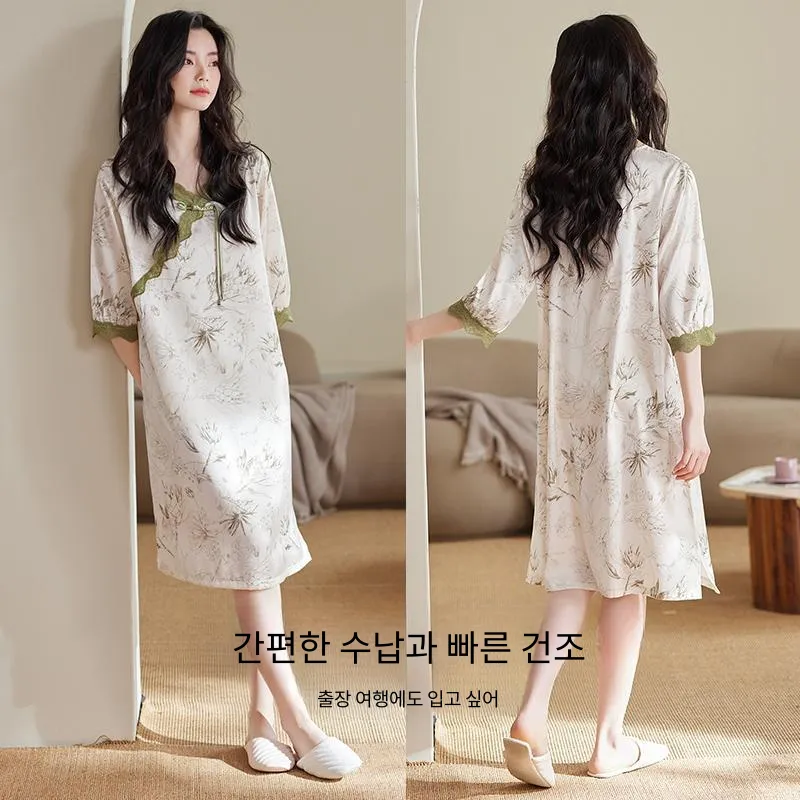 Xuan Liang 63196 밀크 캔디 베이지 여성 나이트 가운 - POIZON