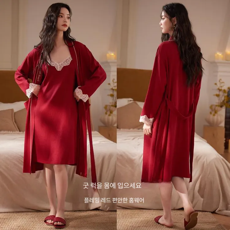 Xuan Liang 63355 마룬 선물 포장 여성 파자마 세트 - POIZON