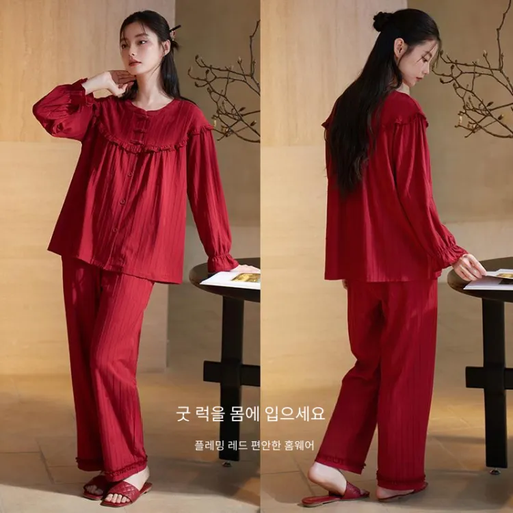 Xuan Liang 63672 마룬 선물 포장 여성 파자마 세트 - POIZON