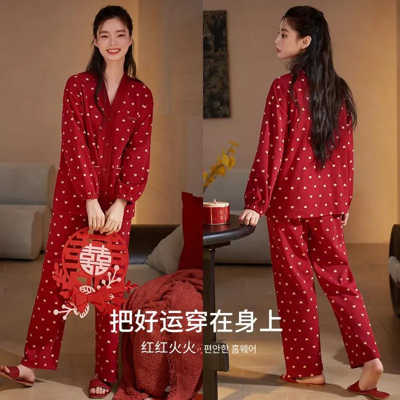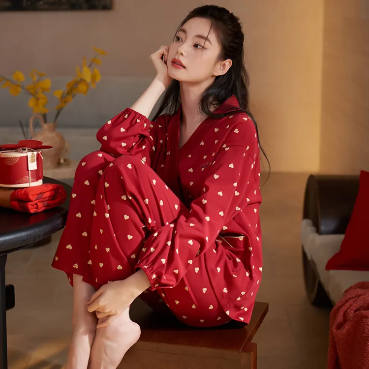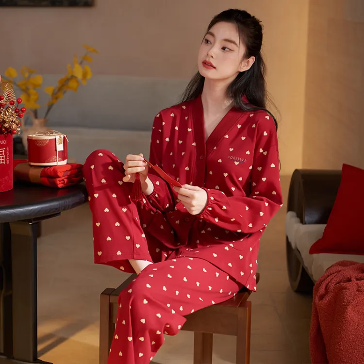 Xuan Liang 63699 마룬 선물 포장 여성 파자마 세트 - POIZON