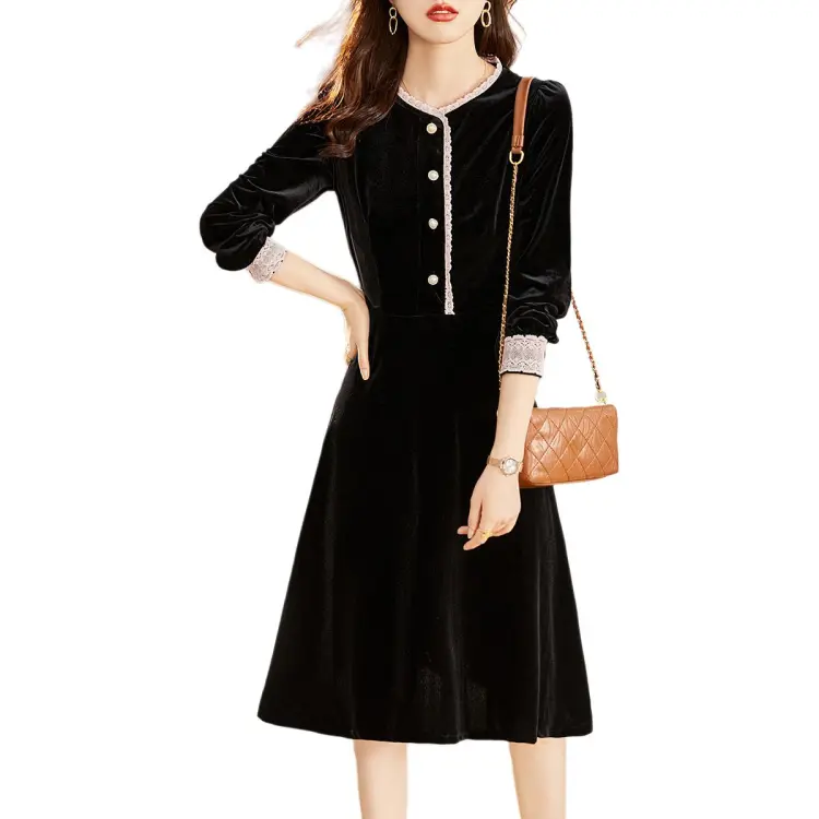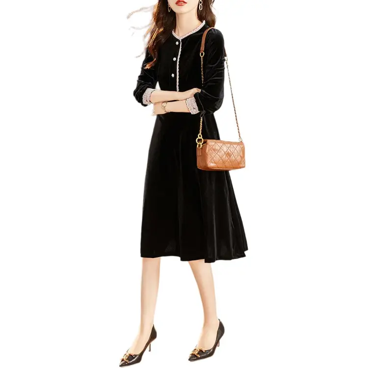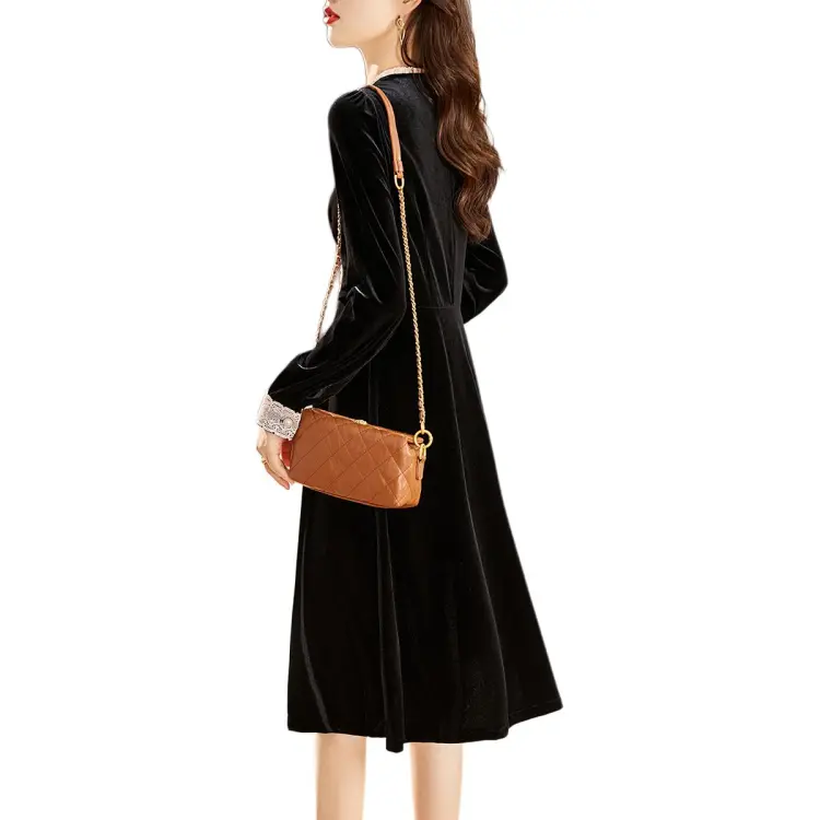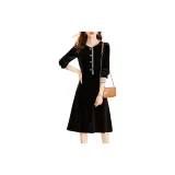 XWI 잉크 블랙 여성 긴팔 원피스 - POIZON