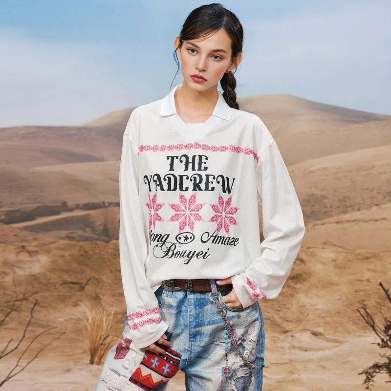 색상:화이트 에스닉 토템 디지털 프린팅 스포츠 의류 + 선셋 레이스 바지