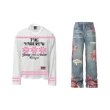 화이트 에스닉 토템 디지털 프린팅 스포츠 의류 + 선셋 레이스 바지