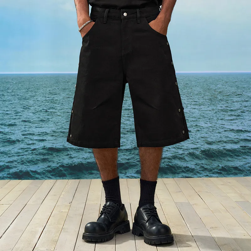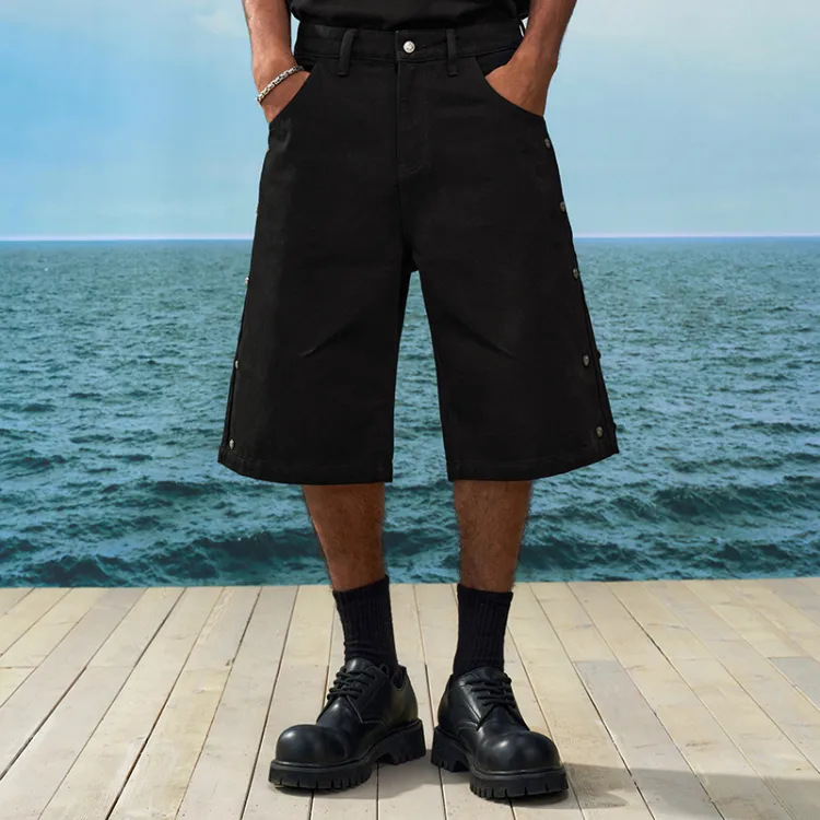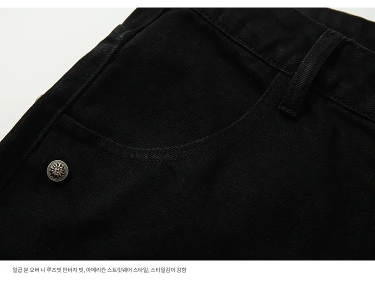 YADcrew 블랙 남녀공용 데님 반바지 - POIZON