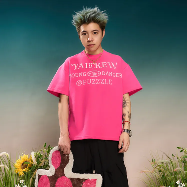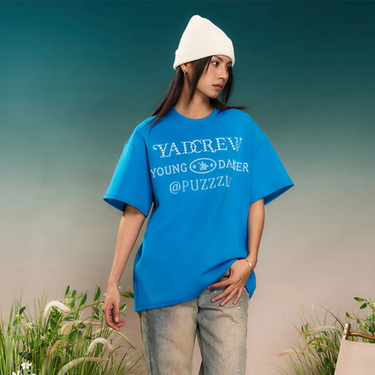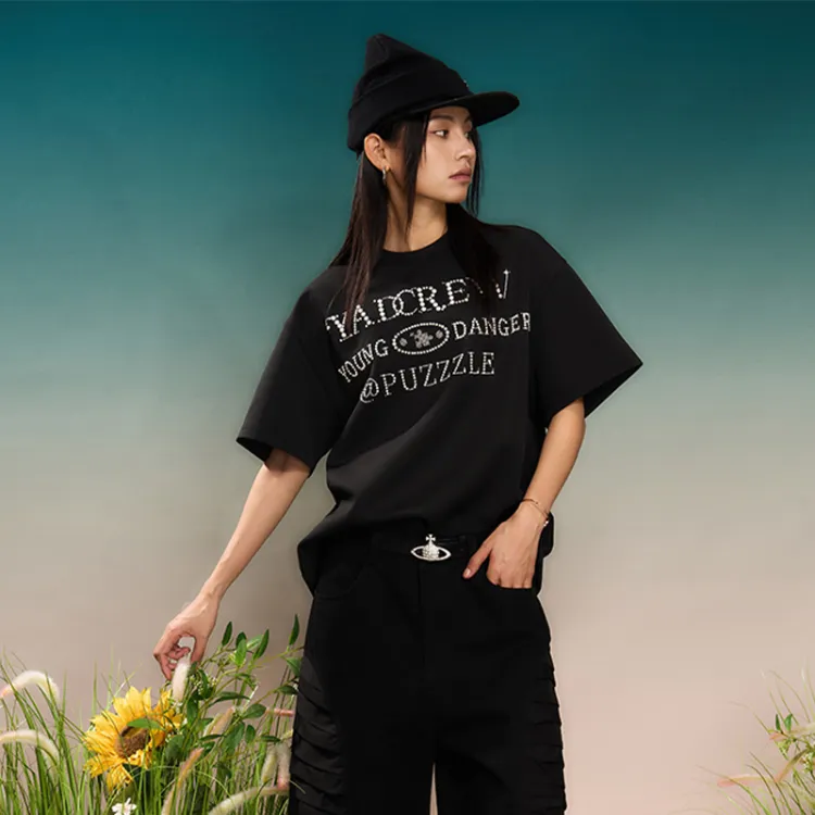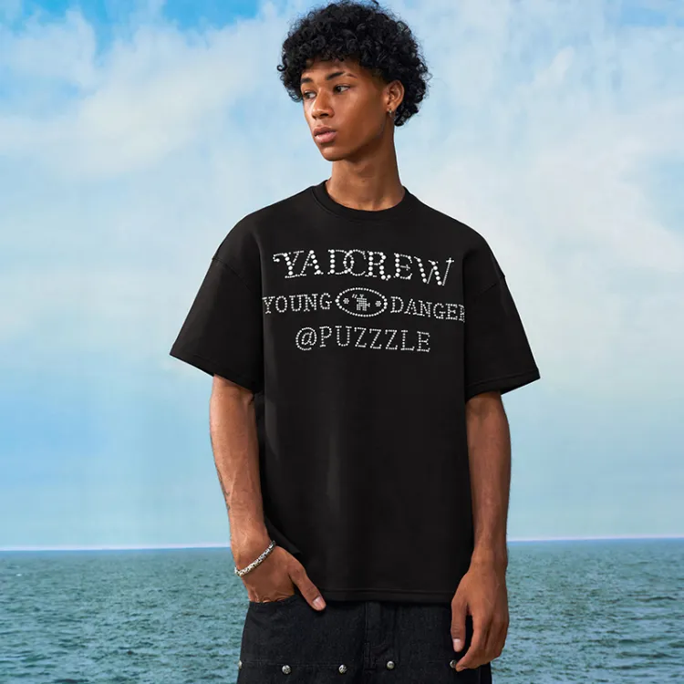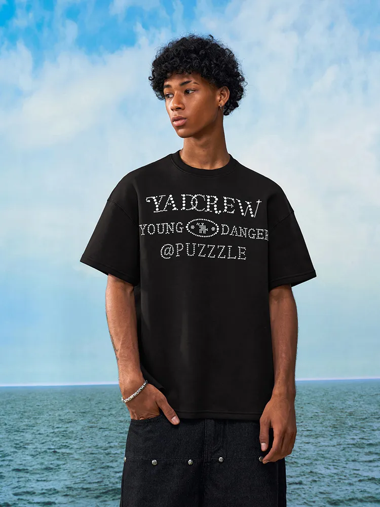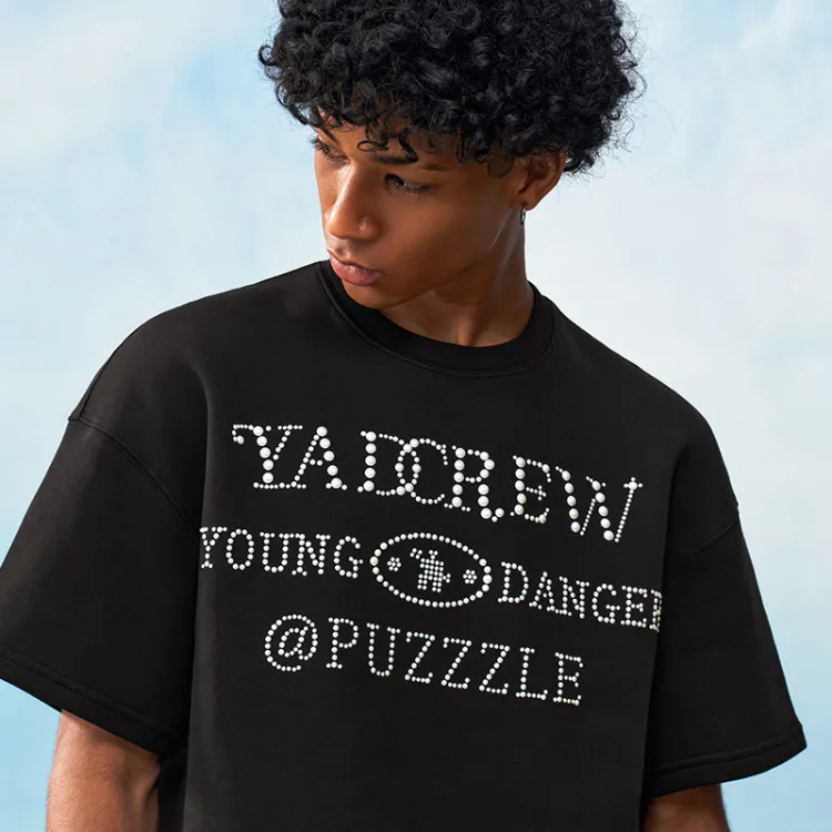 블랙 히트-Transfer 진주 반팔 셔츠 + 그레이 진주 로고 반바지