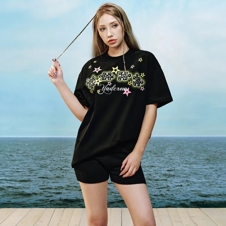 YADcrew 블랙 남녀공용 티셔츠 - POIZON