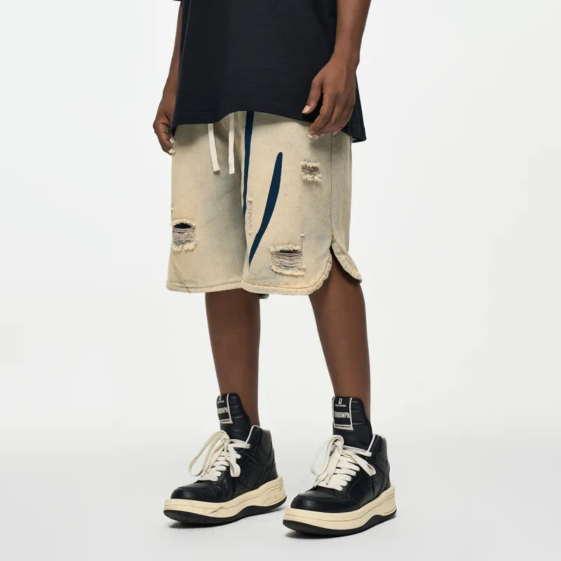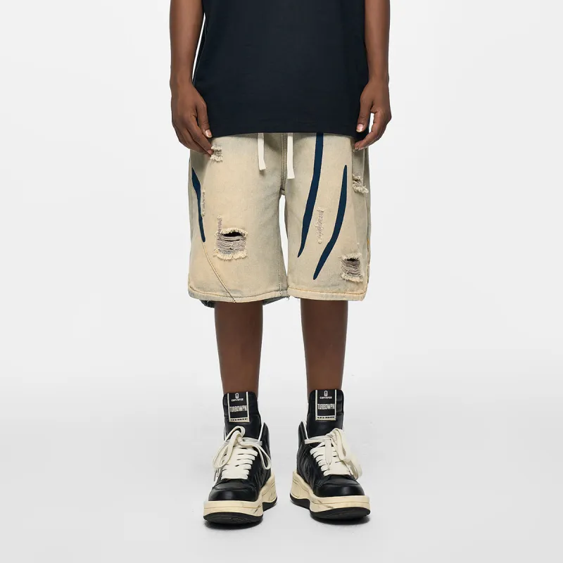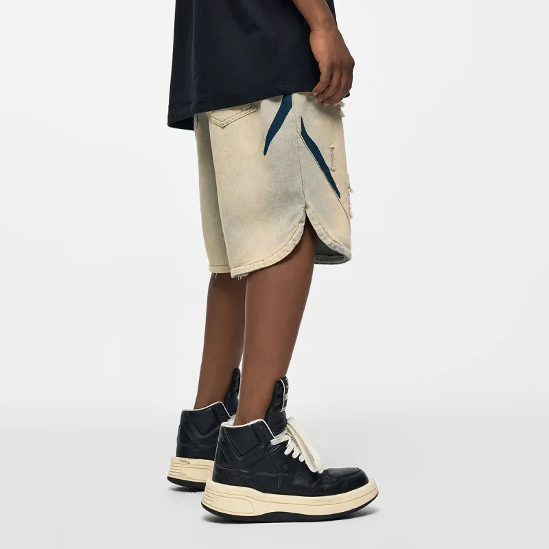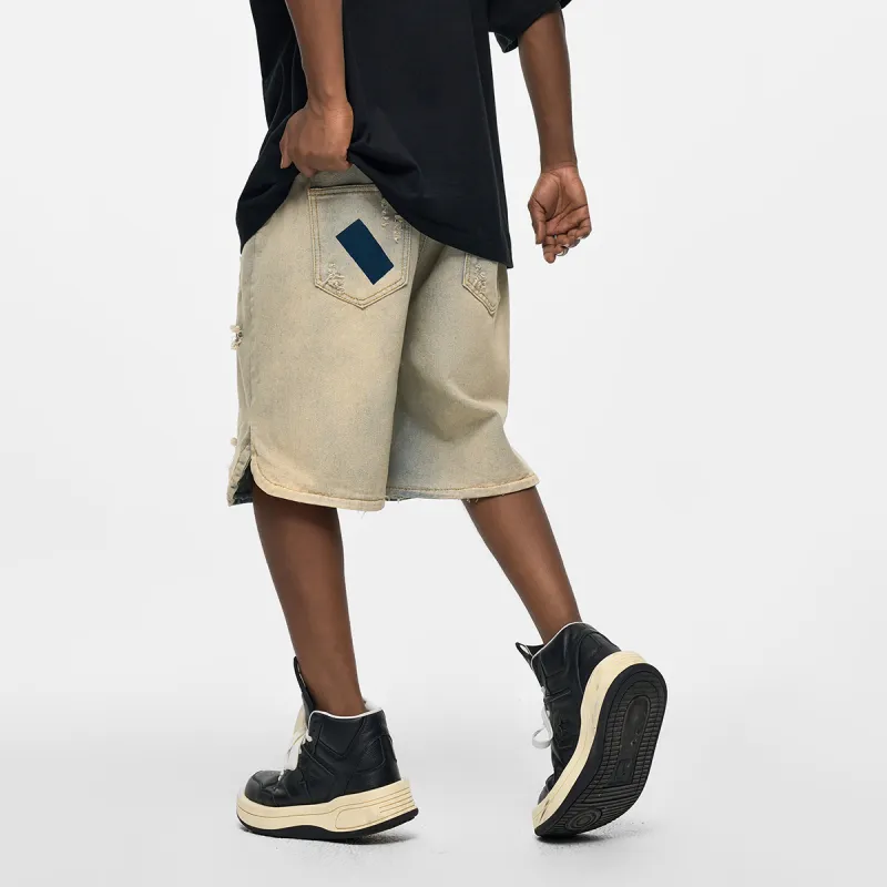 YearnObtainRainbow 데님 반바지 남녀공용 옐로우 머드 - POIZON