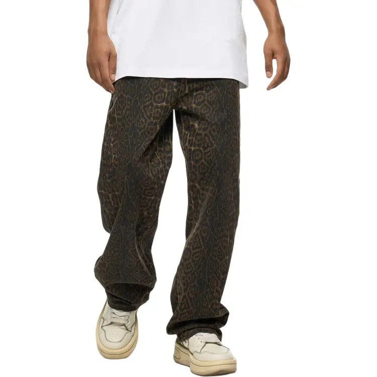YearnObtainRainbow 청바지 남성 레오파드 프린트
