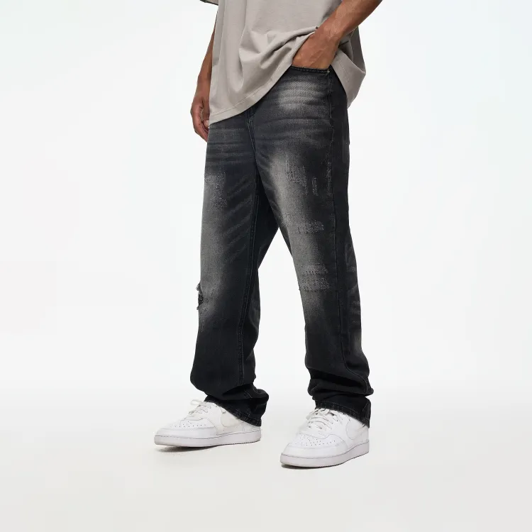 YearnObtainRainbow 블랙 남녀공용 청바지 - POIZON
