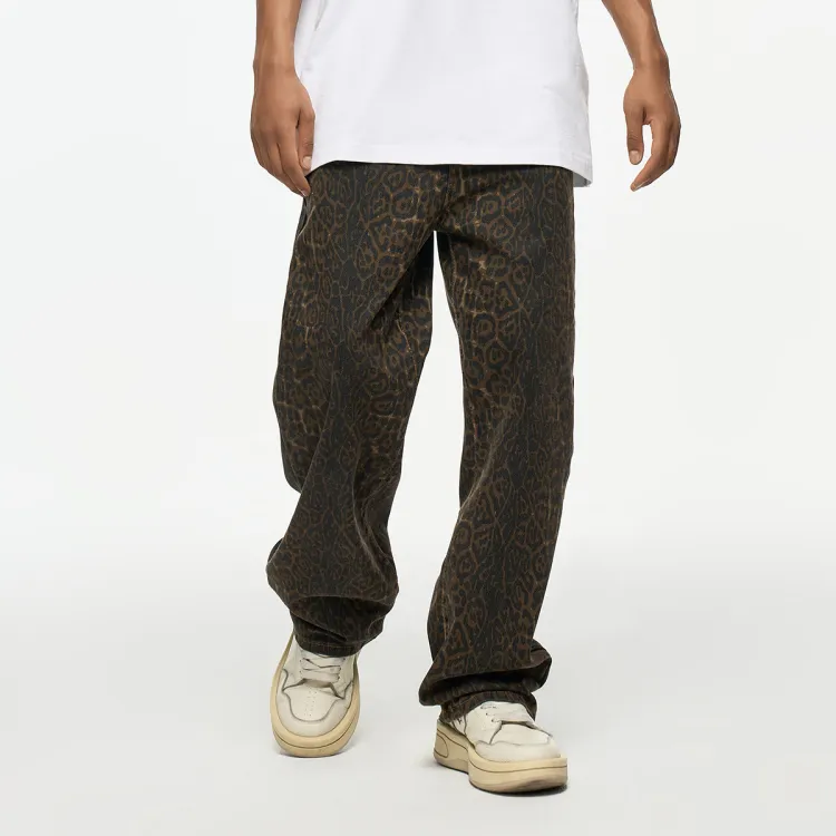 YearnObtainRainbow 청바지 남녀공용 레오파드 프린트