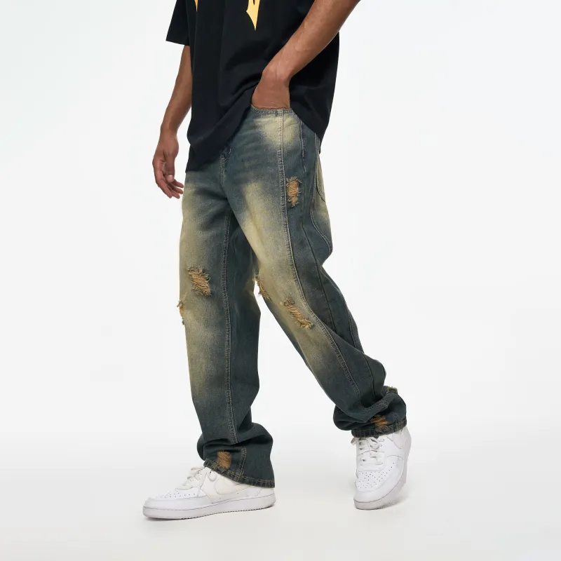 YearnObtainRainbow 청바지 남녀공용 빈티지 블루