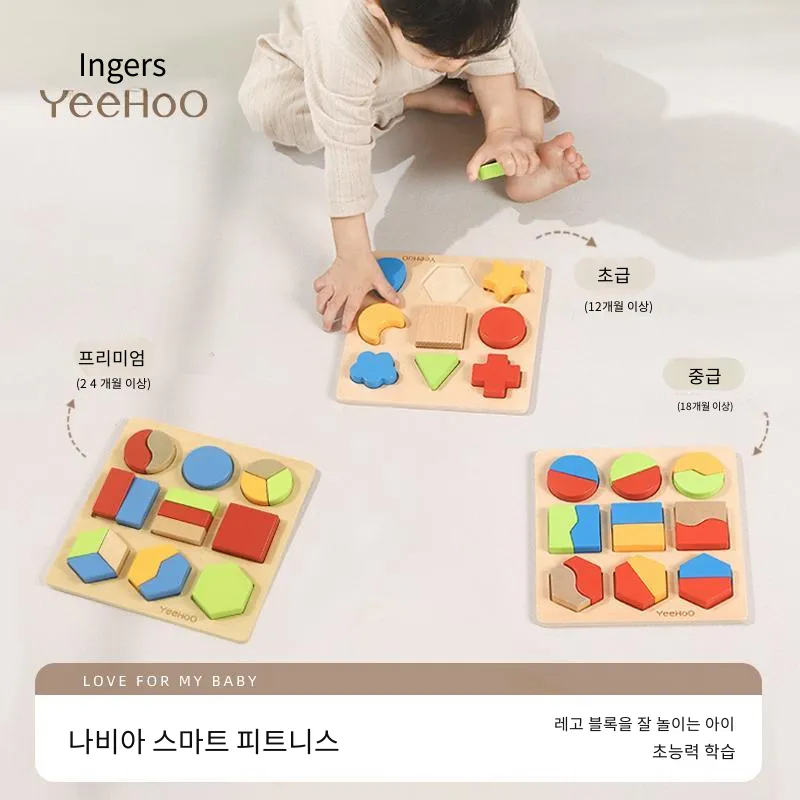 YeeHoO 원목 빌딩 블록, 라지 그레인 3D 퍼즐 교육용 장난감 0 50P 나비야 스마트 혼합 원단