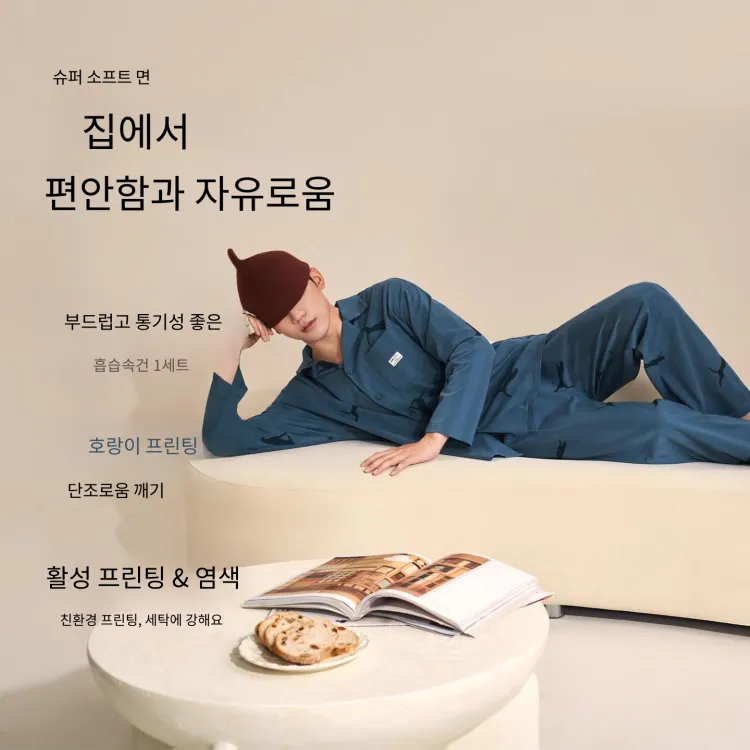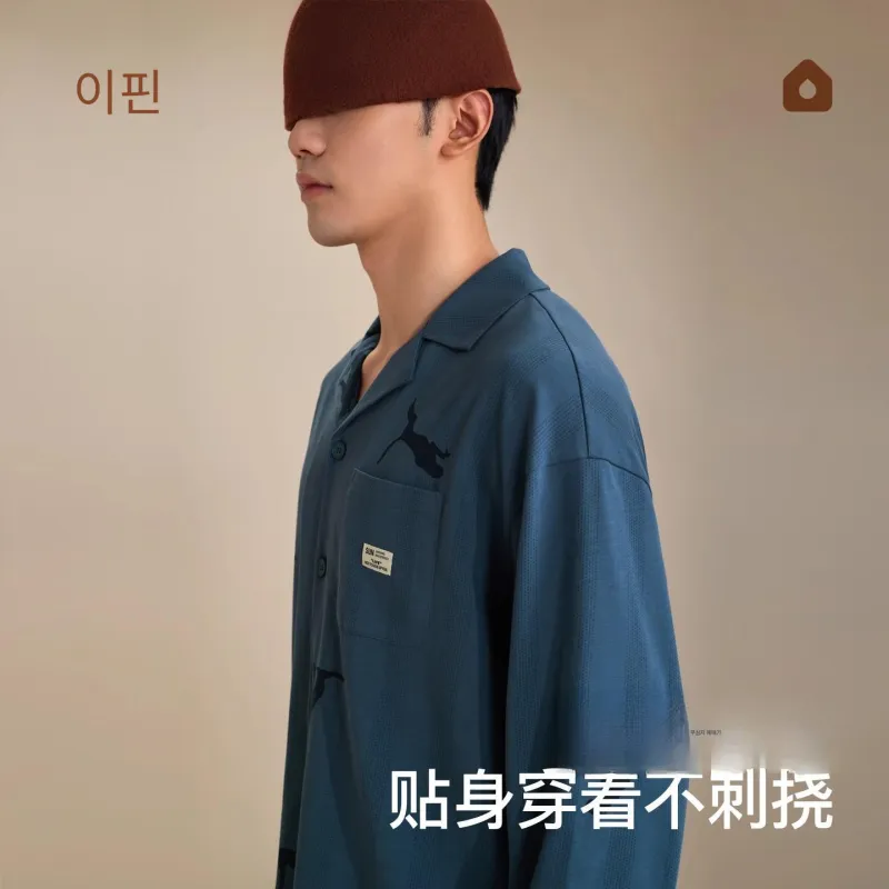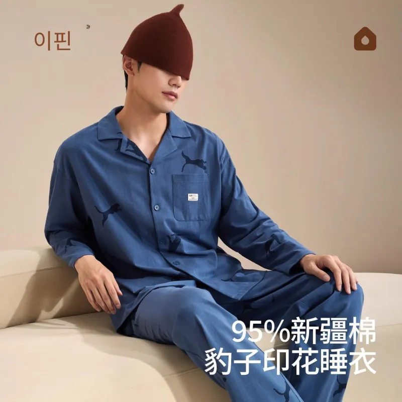 Yi Fen 블루 스트라이프 패턴 표범 남성 파자마 세트 - POIZON
