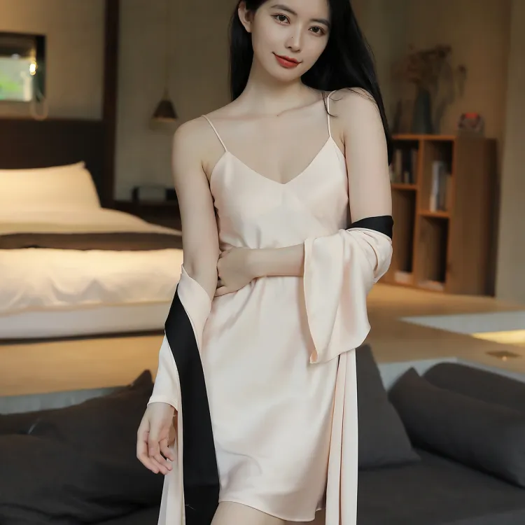 색상:블랙 캐미솔 드레스 + 겉감 로브