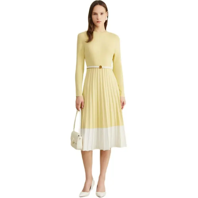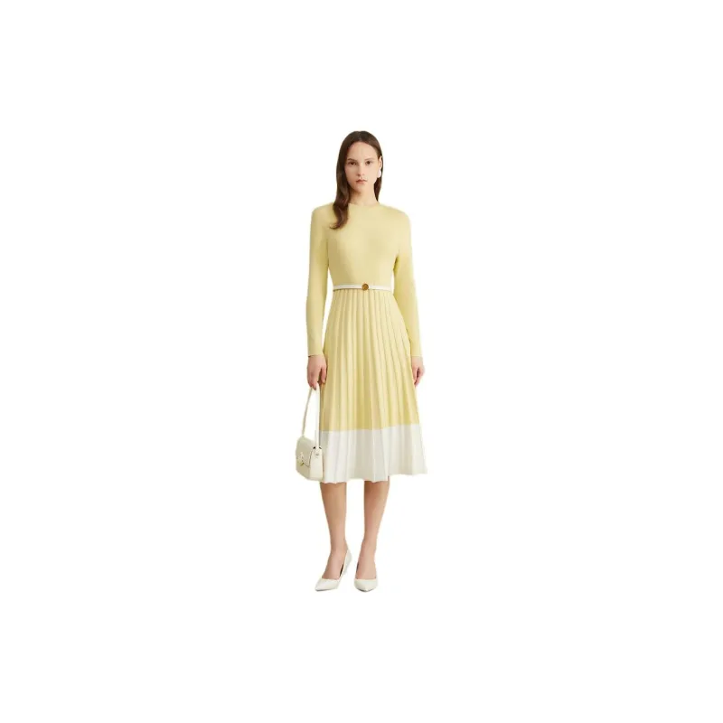 Yiner 라이트 옐로우 여성 긴팔 원피스 - POIZON