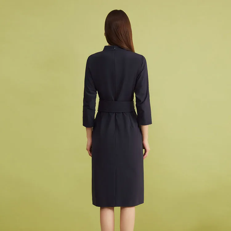 Yiner 블루 여성 긴팔 원피스