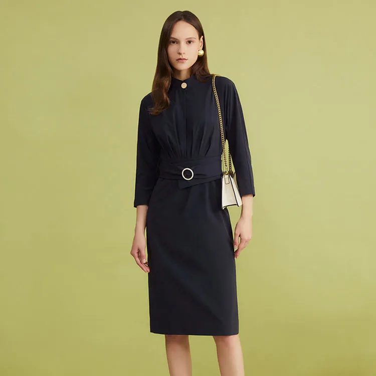 Yiner 블루 여성 긴팔 원피스 - POIZON