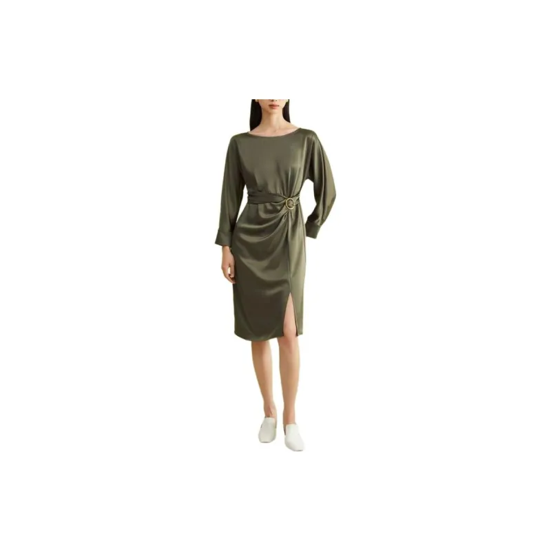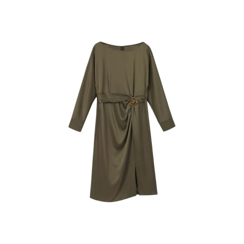 Yiner 올리브 그린 여성 긴팔 원피스 - POIZON