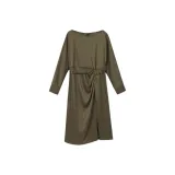Yiner 올리브 그린 여성 긴팔 원피스