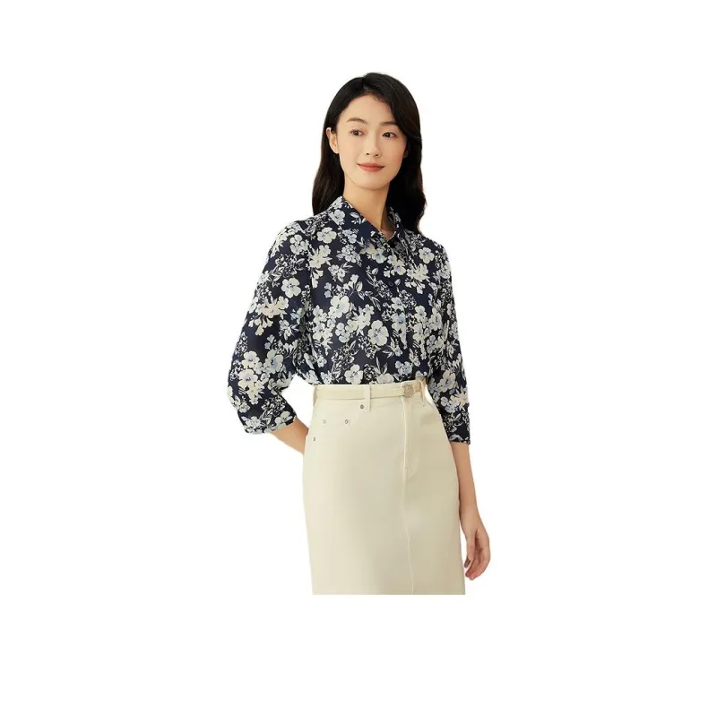 Yiner 딥 오션 블루 여성 셔츠